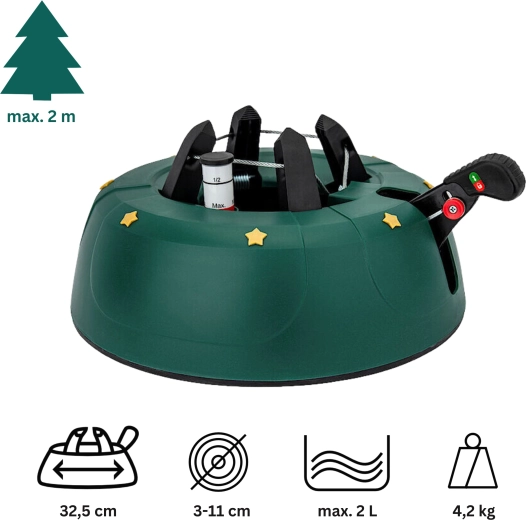 Zintegrowany zbiornik 2 l z pływakowym wskaźnikiem pomaga utrzymać igliwie świeże – zawsze wiesz, kiedy pora dolać wodę.
