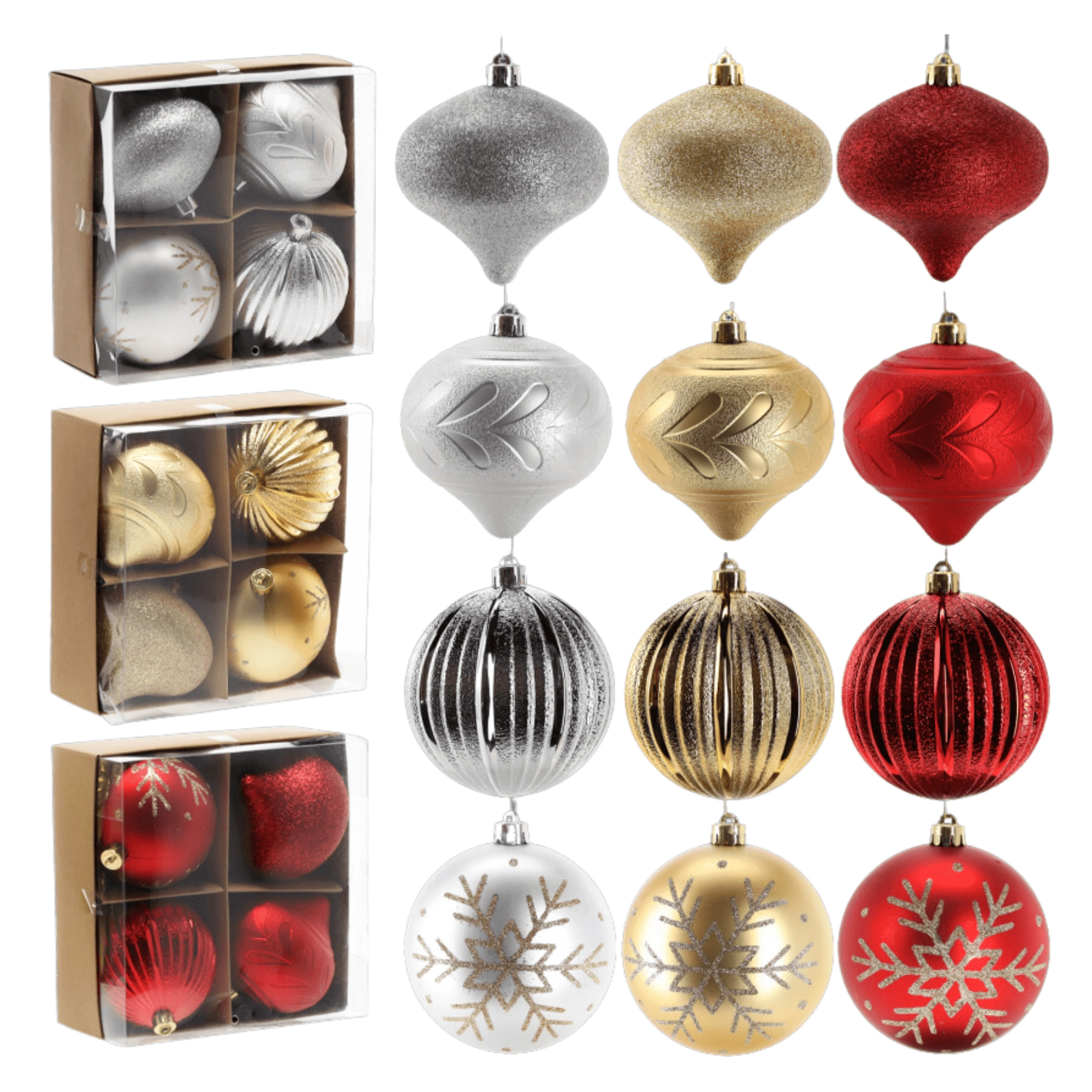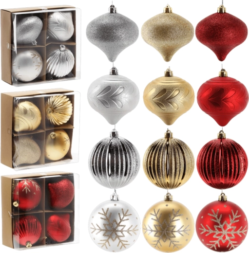 Kombinacja żłobkowanych, brokatowych i reliefowych powierzchni doda Twojej choince głębi i blasku, który świetnie prezentuje się w świetle dziennym i sztucznym.