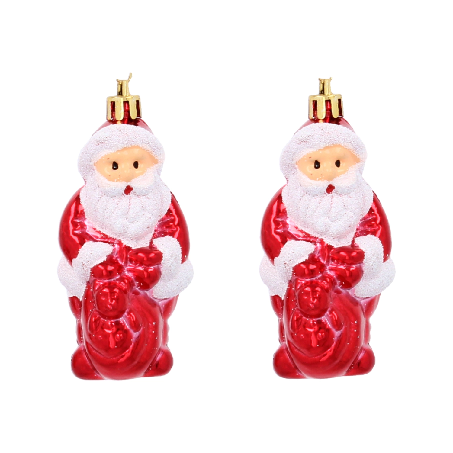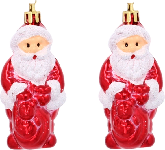 Wnieś do swojego domu magię Świąt dzięki eleganckiemu zestawowi dwóch ozdób przedstawiających Mikołaja z workiem. Te dekoracje z wysokiej jakości plastiku są bezpieczne, odporne na uszkodzenia i w klasycznym czerwono-białym wykończeniu pięknie dopełnią każdą świąteczną aranżację.