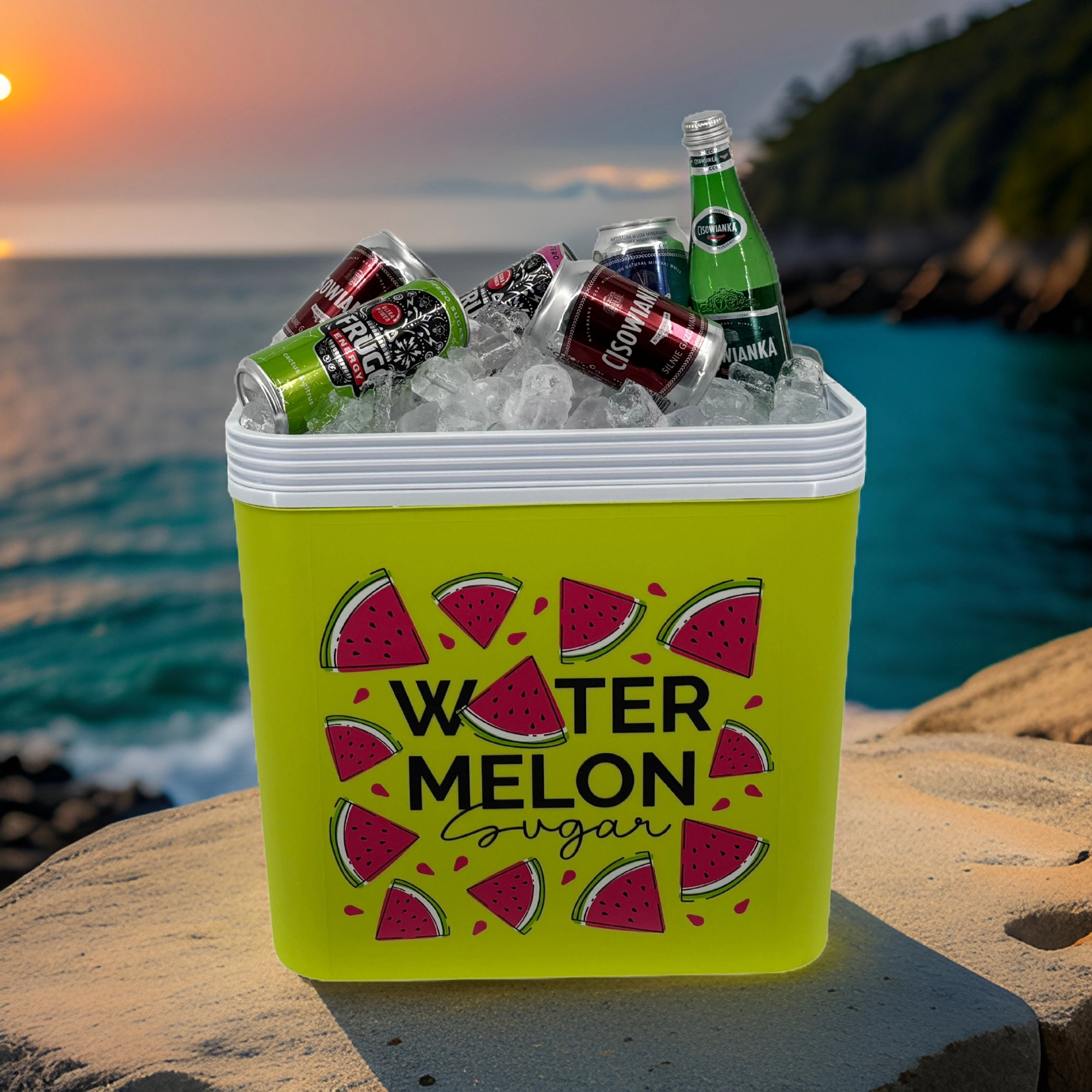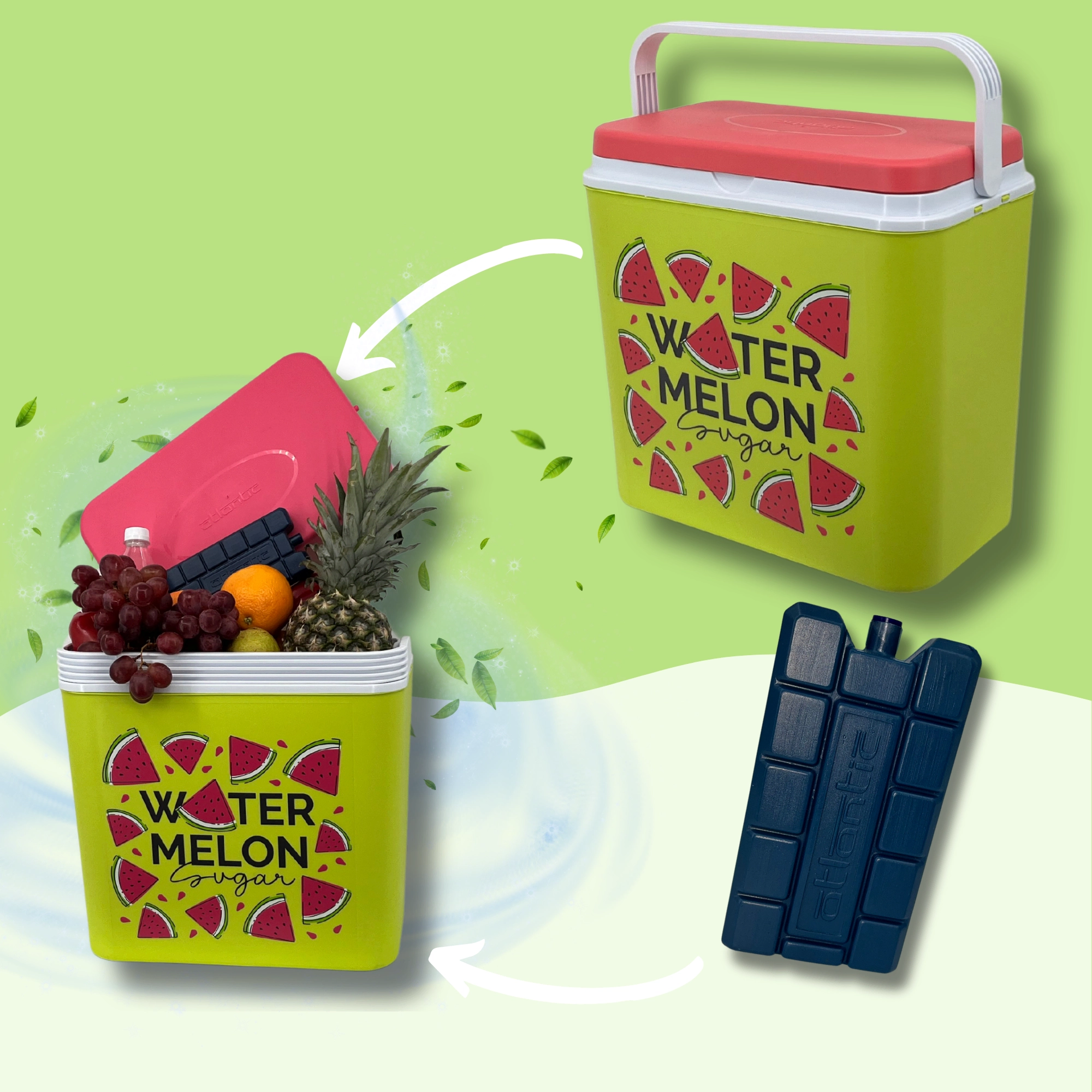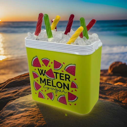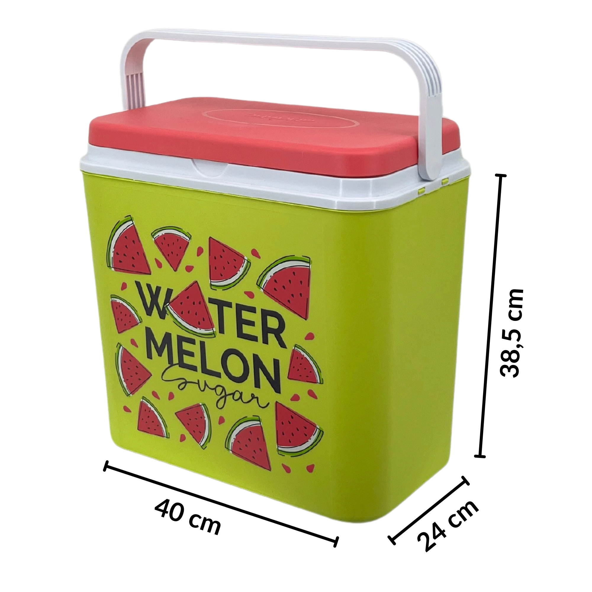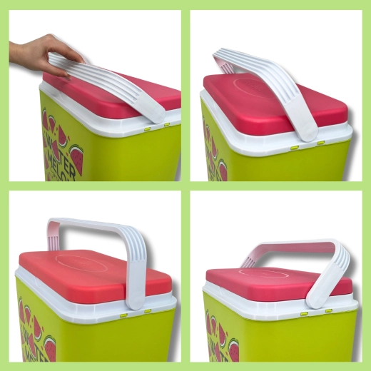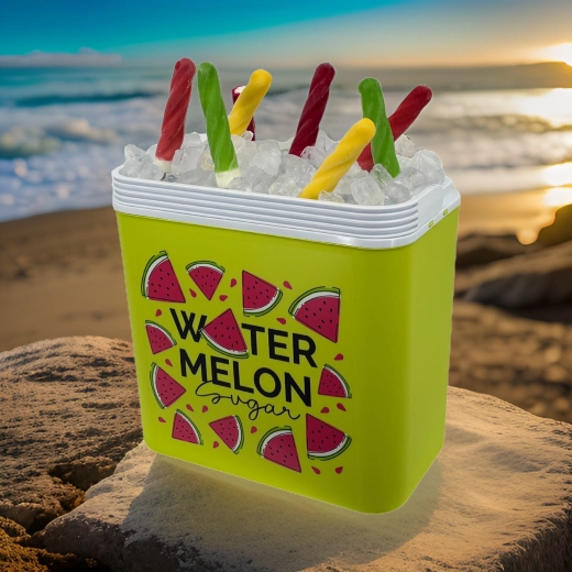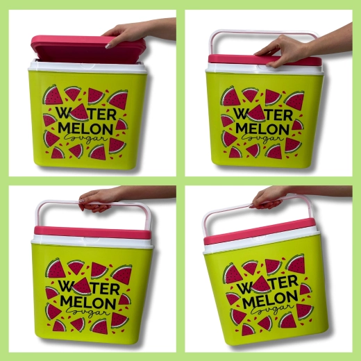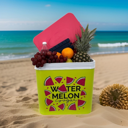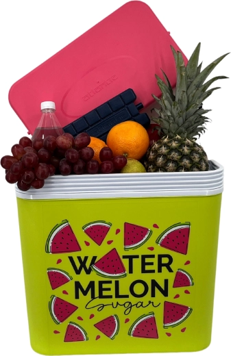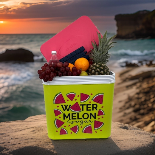 Stylowa pasywna lodówka turystyczna o pojemności 24 l utrzyma Twoje napoje i żywność długo świeże dzięki wysokiej jakości izolacji i chłodzeniu na wkłady mrożące. Kompaktowe wymiary, mocny uchwyt do łatwego przenoszenia oraz letni motyw WATERMELON czynią z niej idealny wybór na wycieczki, plażę i piknik. Wyprodukowana w UE, bezpieczna do kontaktu z żywnością i łatwa w czyszczeniu.
