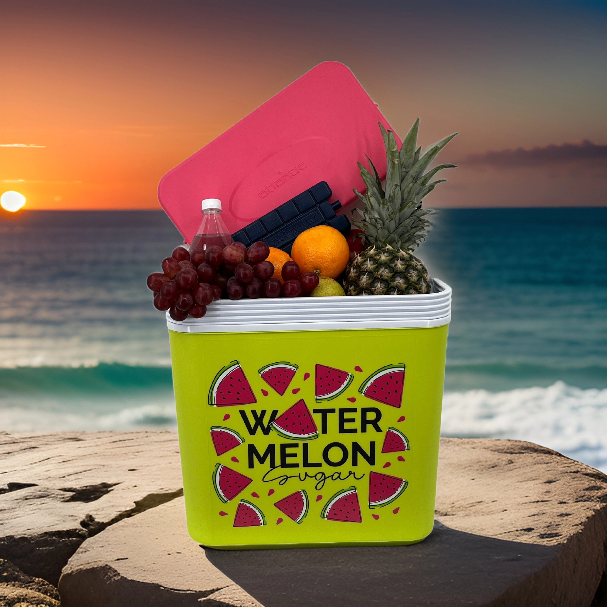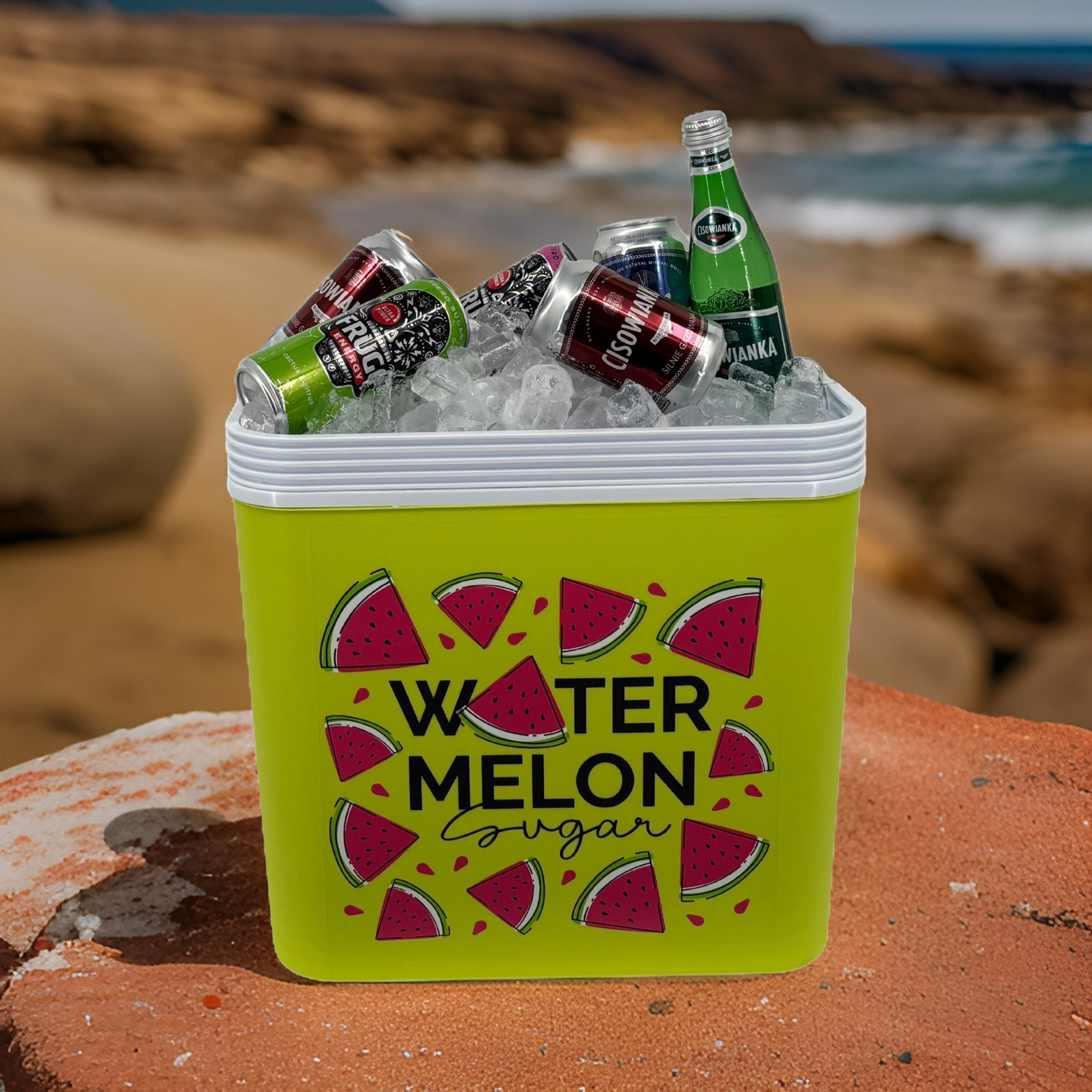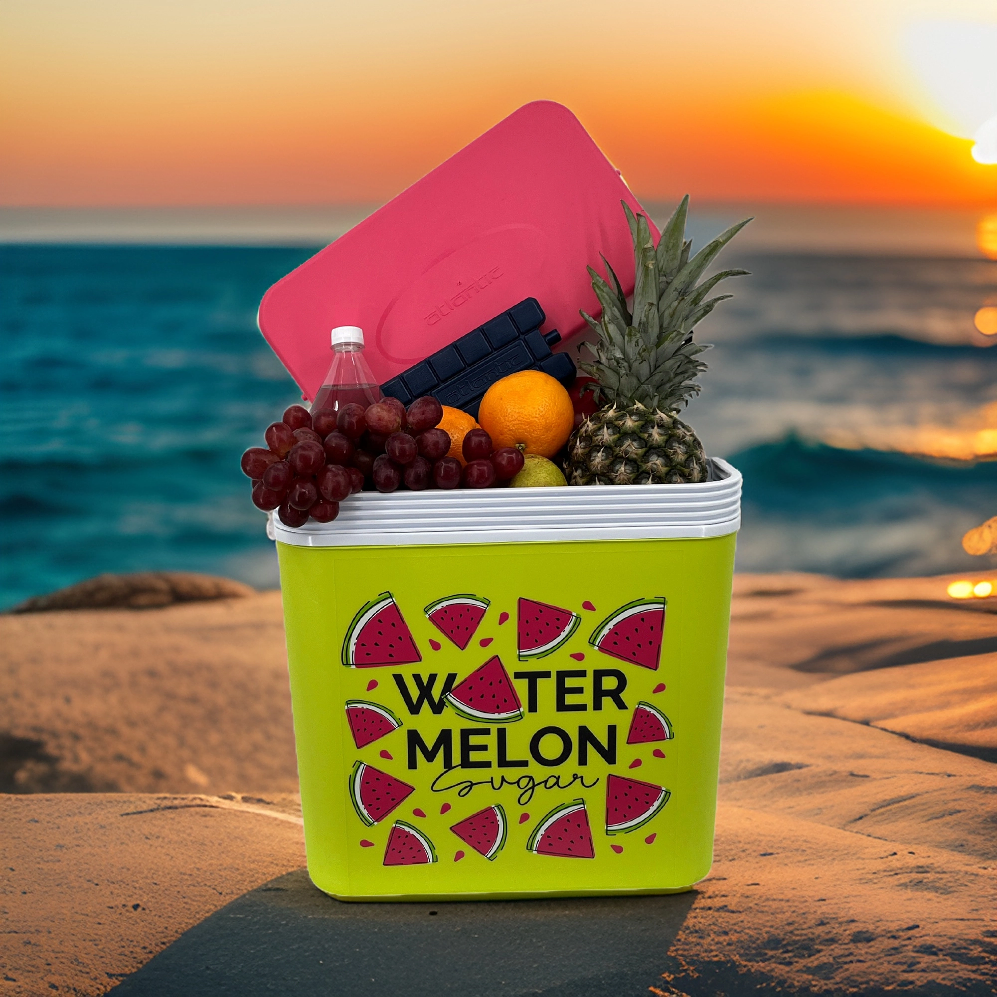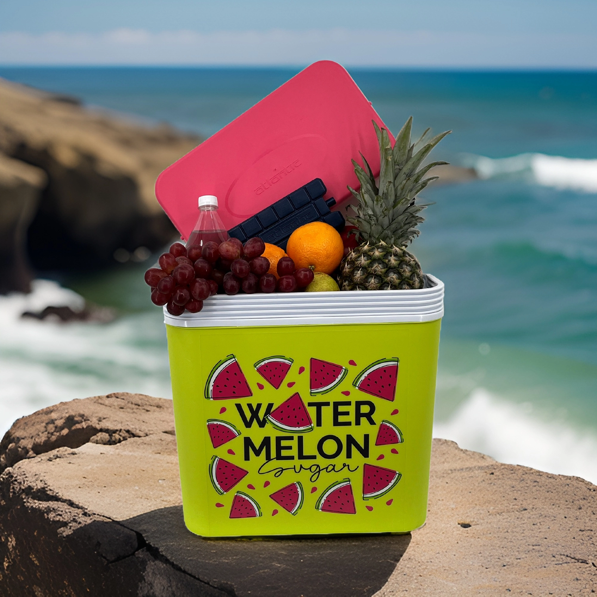 Stylowa pasywna lodówka turystyczna o pojemności 24 l utrzyma Twoje napoje i żywność długo świeże dzięki wysokiej jakości izolacji i chłodzeniu na wkłady mrożące. Kompaktowe wymiary, mocny uchwyt do łatwego przenoszenia oraz letni motyw WATERMELON czynią z niej idealny wybór na wycieczki, plażę i piknik. Wyprodukowana w UE, bezpieczna do kontaktu z żywnością i łatwa w czyszczeniu.