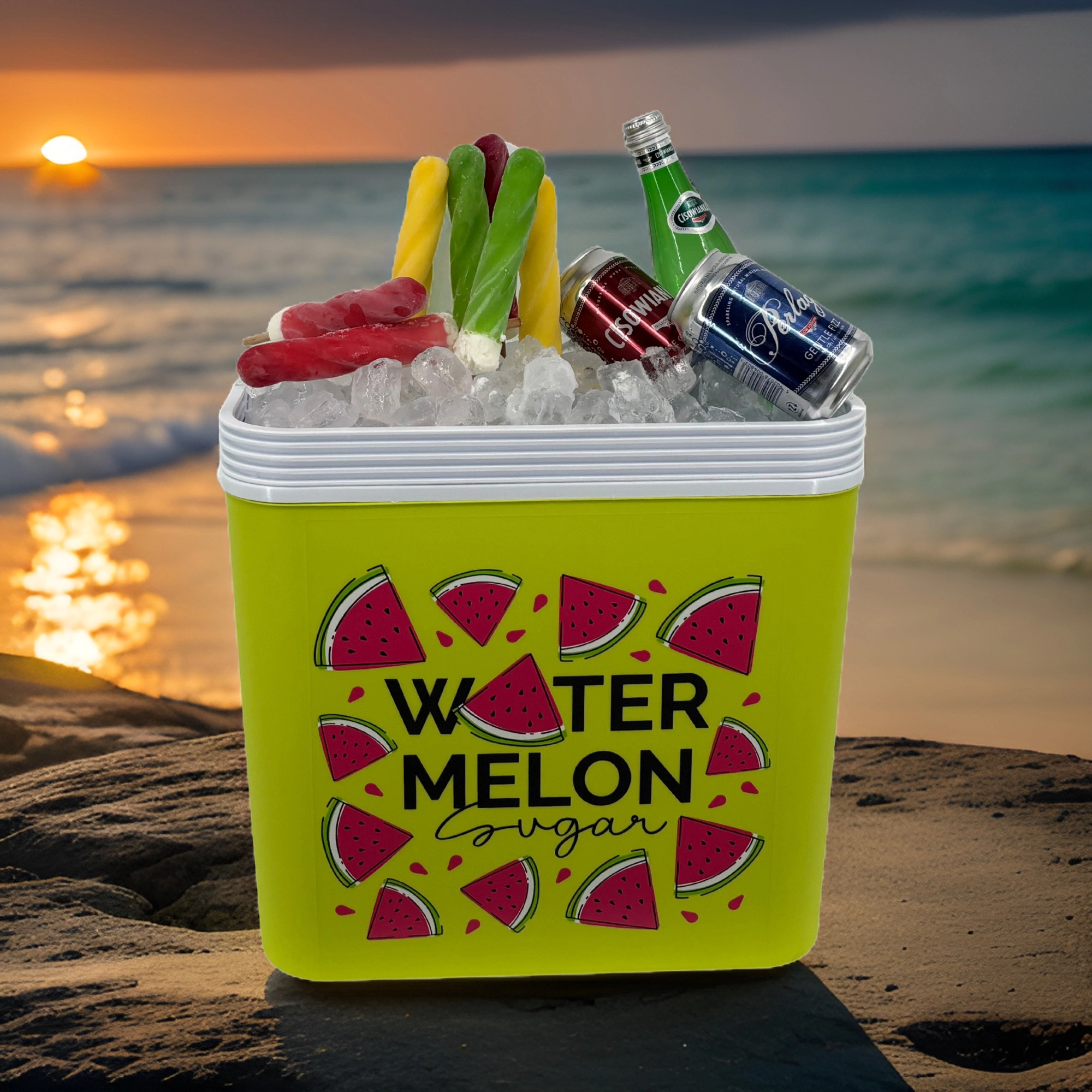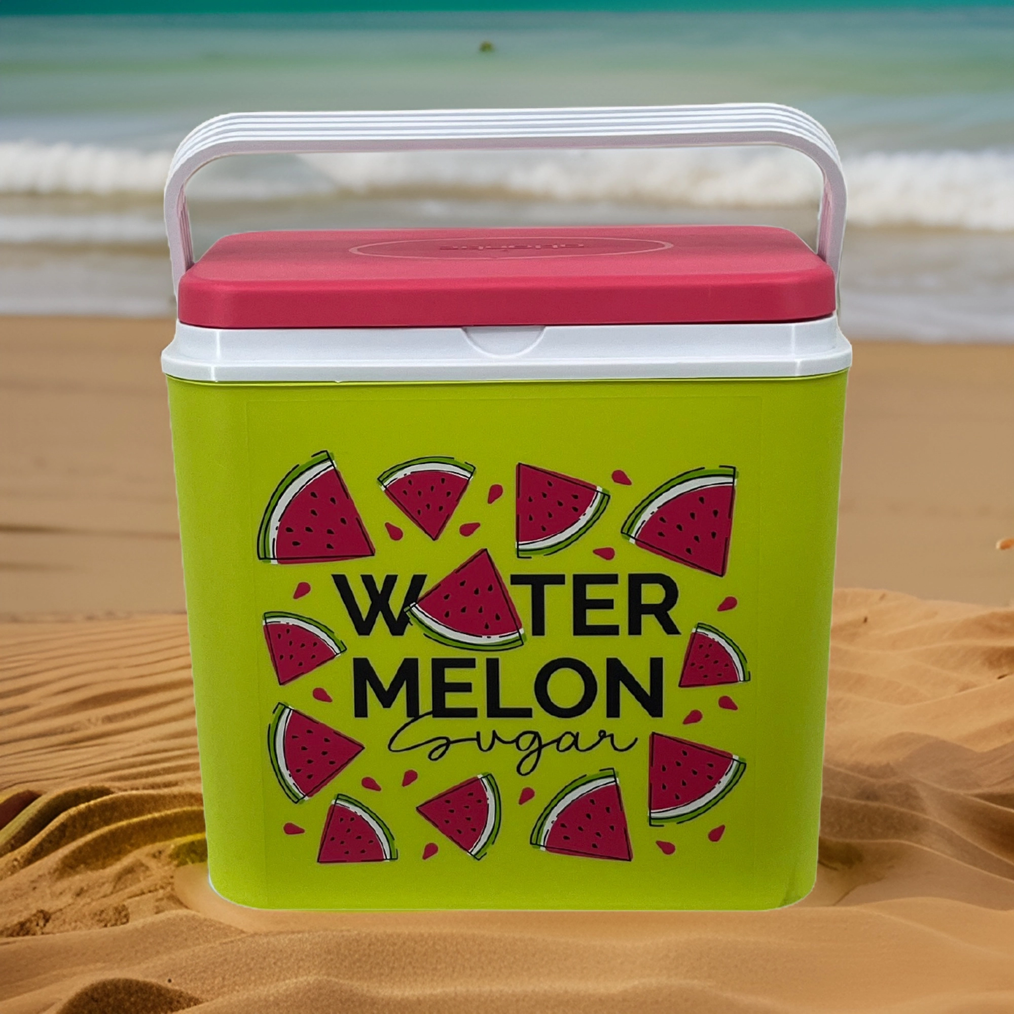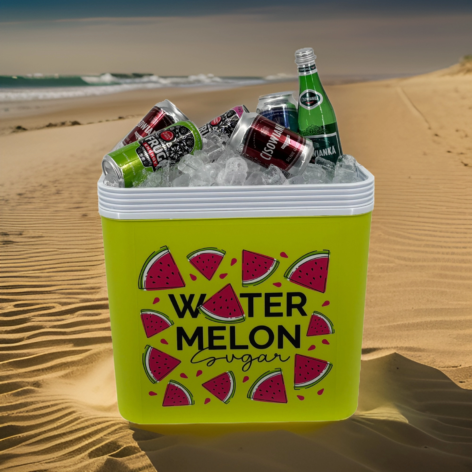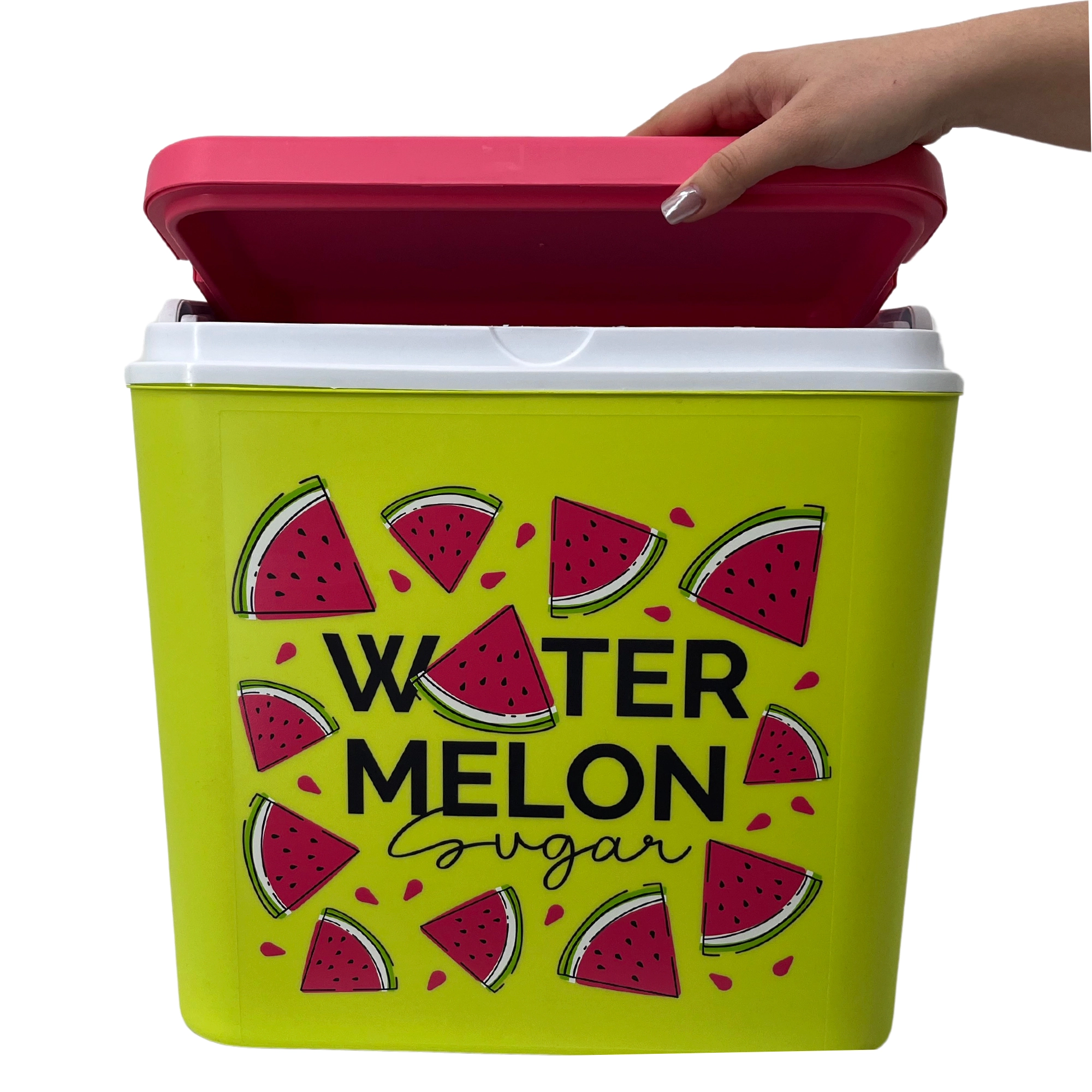 Stylowa pasywna lodówka turystyczna o pojemności 24 l utrzyma Twoje napoje i żywność długo świeże dzięki wysokiej jakości izolacji i chłodzeniu na wkłady mrożące. Kompaktowe wymiary, mocny uchwyt do łatwego przenoszenia oraz letni motyw WATERMELON czynią z niej idealny wybór na wycieczki, plażę i piknik. Wyprodukowana w UE, bezpieczna do kontaktu z żywnością i łatwa w czyszczeniu.