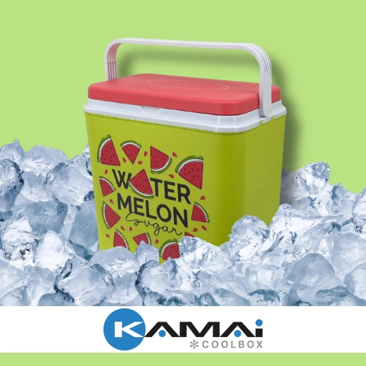 Kamai Coolbox Watermelon 24 l to uniwersalna lodówka turystyczna, która wyróżnia się niezawodnym pasywnym chłodzeniem na wkłady, lekką i wytrzymałą konstrukcją z polipropylenu oraz atrakcyjnym arbuzowym nadrukiem. Wewnętrzna wysokość mieści butelki 2 l w pozycji pionowej, więc zawsze masz pod ręką wystarczającą ilość schłodzonych napojów.