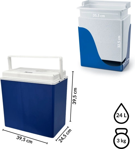 Kompaktowa i lekka lodówka samochodowa o pojemności 24 l z zasilaniem 12 V w aucie oraz 230 V z sieci. Dzięki technologii Peltiera, bez szkodliwych substancji chemicznych, dłużej utrzymuje świeżość żywności i napojów. Posiada świetną izolację, praktyczną rączkę z blokadą przed samoczynnym otwarciem i mieści butelki 1,5 l w pozycji pionowej.
