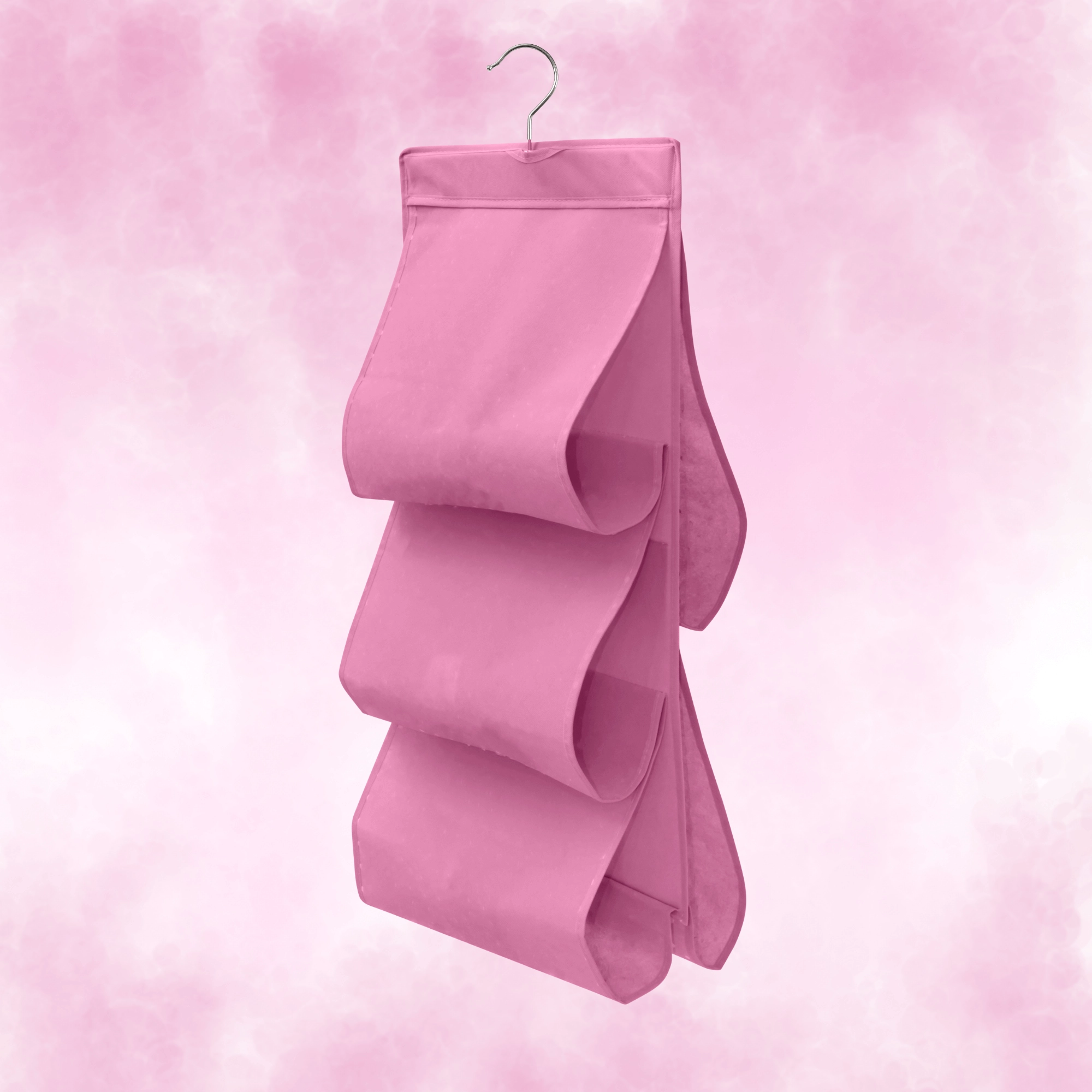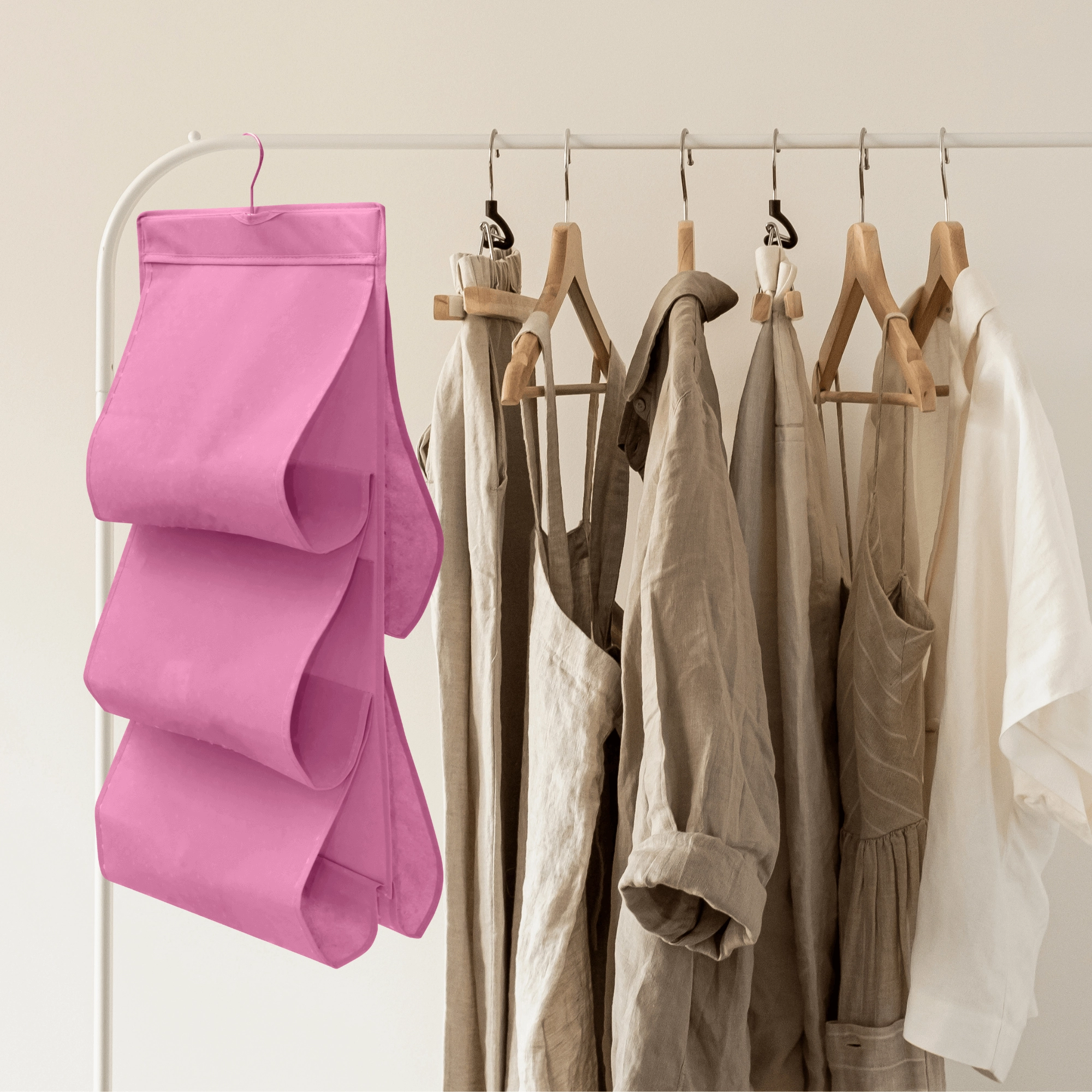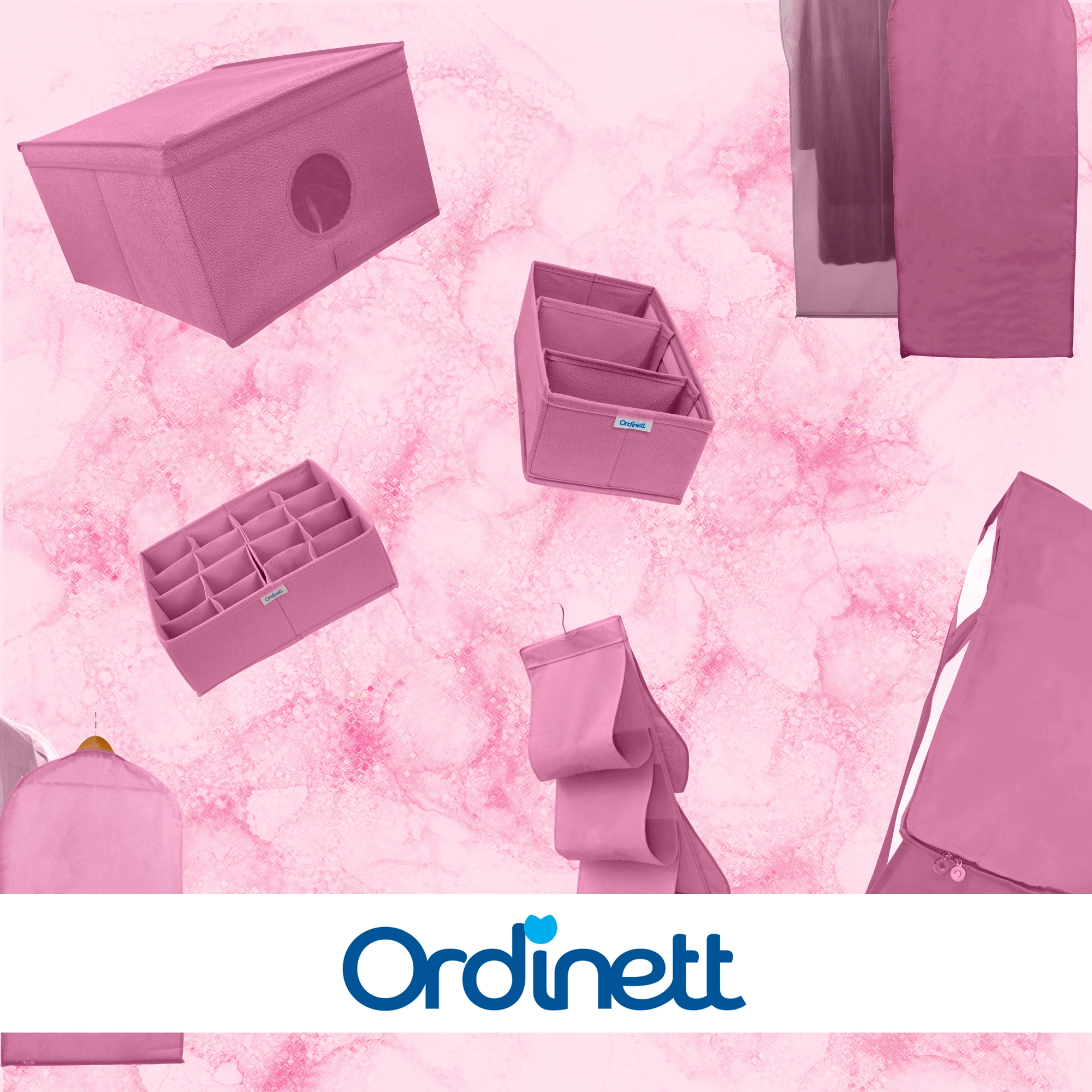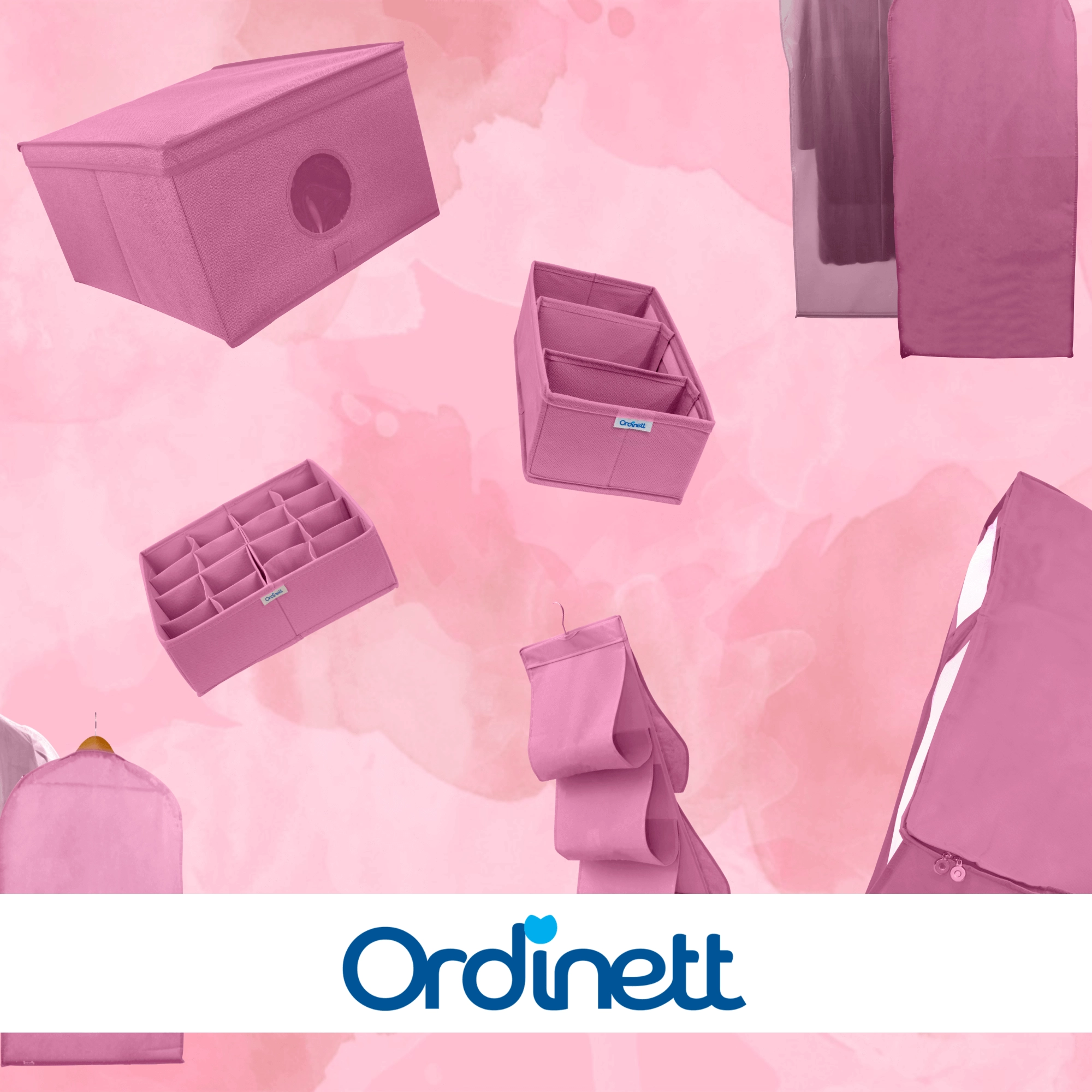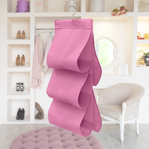 Wytrzymała włóknina (poliester) jest lekka, oddychająca i łatwa w pielęgnacji. Różowe wykończenie dodaje wnętrzu szafy świeżego akcentu i pomaga w utrzymaniu porządku w codziennych rzeczach.
