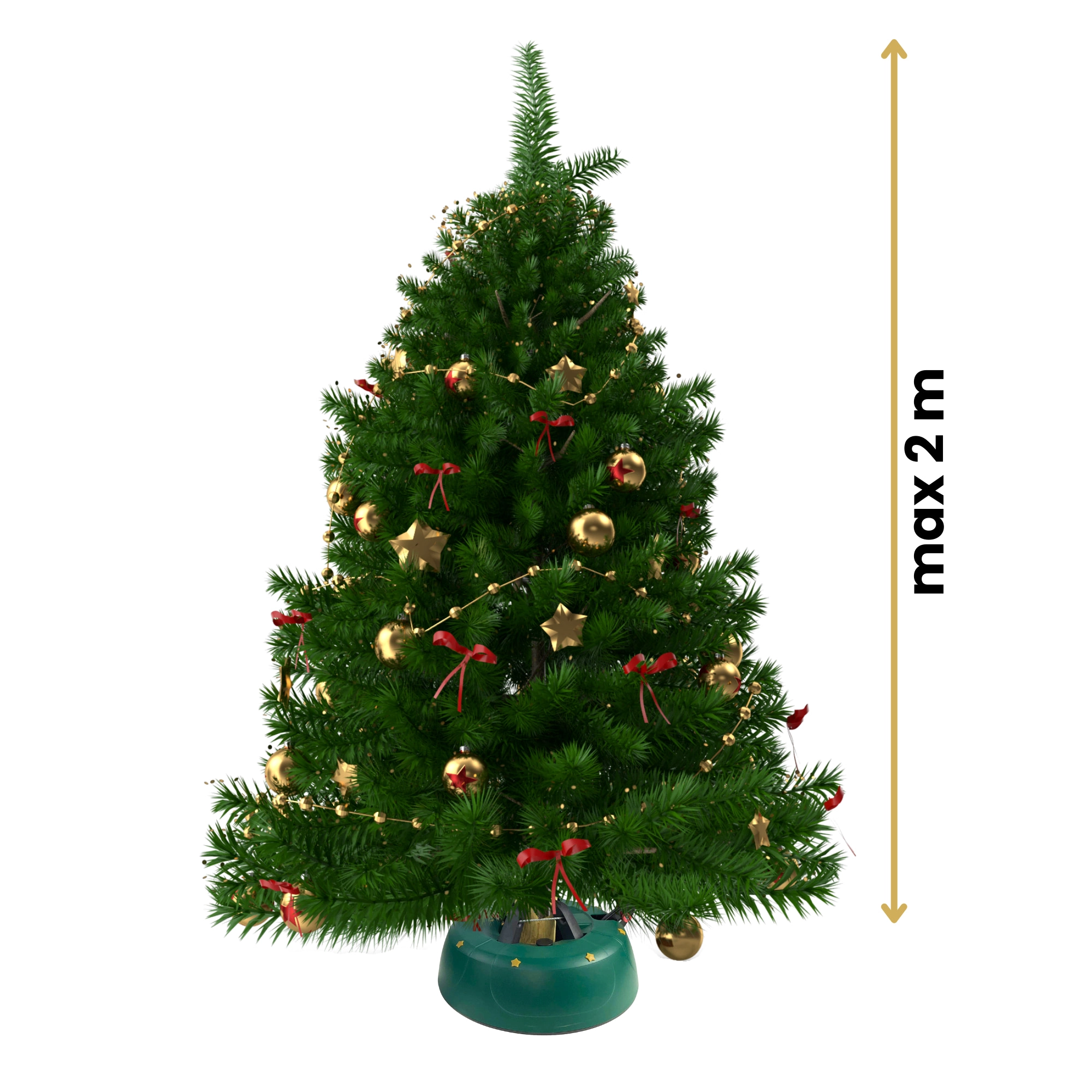 Uczyń święta jeszcze spokojniejszymi dzięki stabilnemu stojakowi na choinkę Kamai. Oferuje szybki i bezpieczny montaż za pomocą automatycznie zaciskających się haków, stabilną podstawę dla drzewek do 2 m oraz zintegrowany zbiornik na wodę (2 l) z wskaznikiem poziomu. Do tego blokada dźwigni chroniąca przed przypadkowym zwolnieniem i elegancki design ze złotymi gwiazdami.