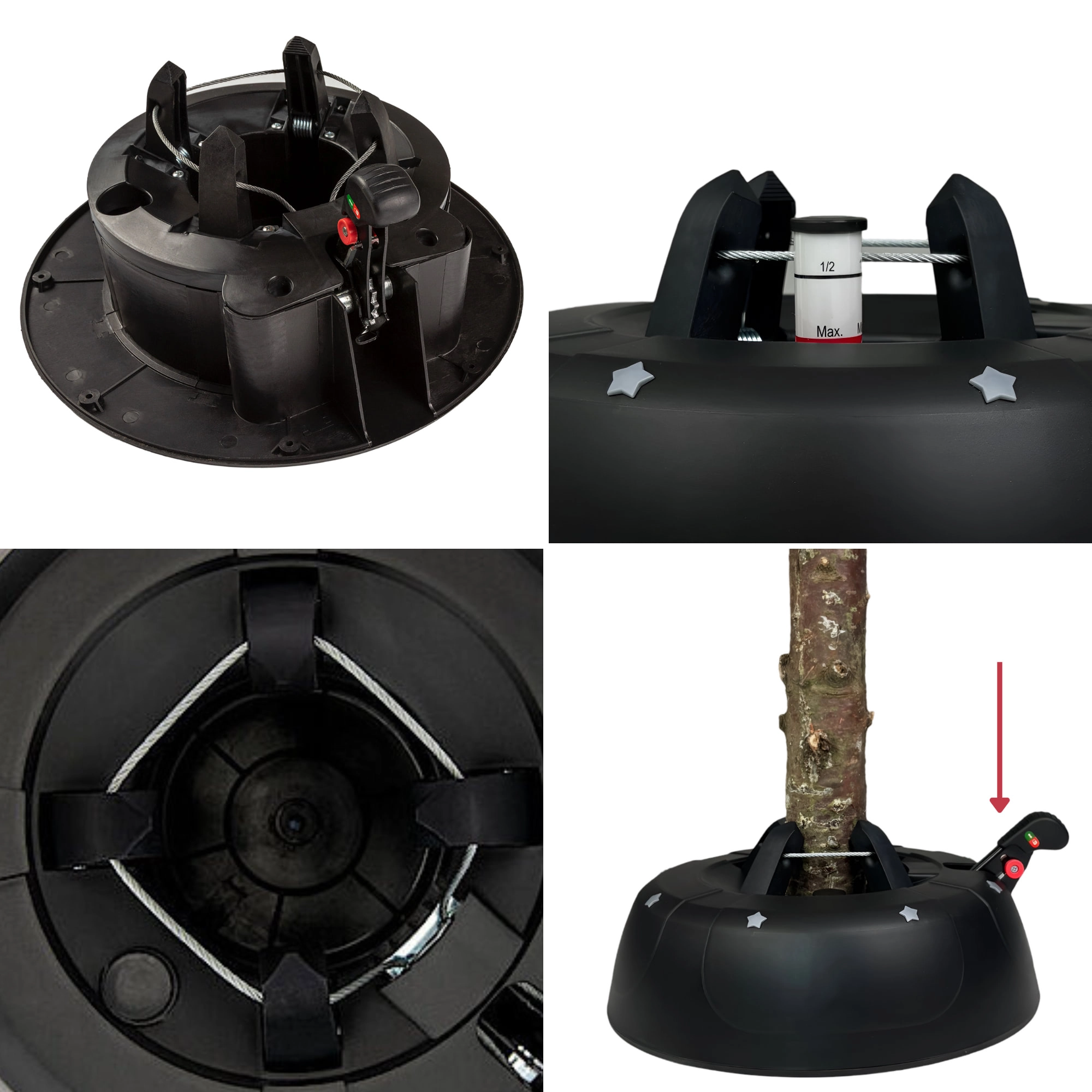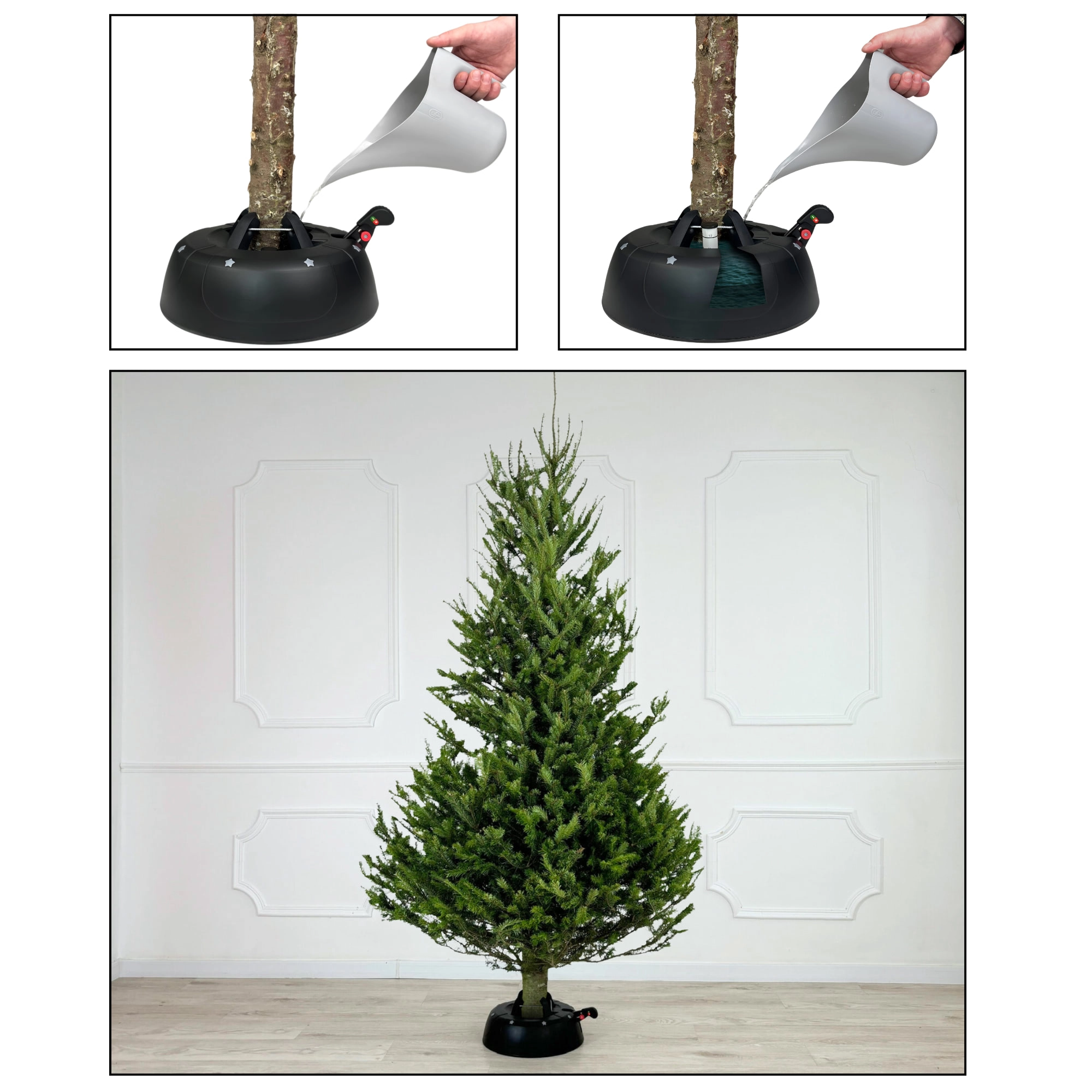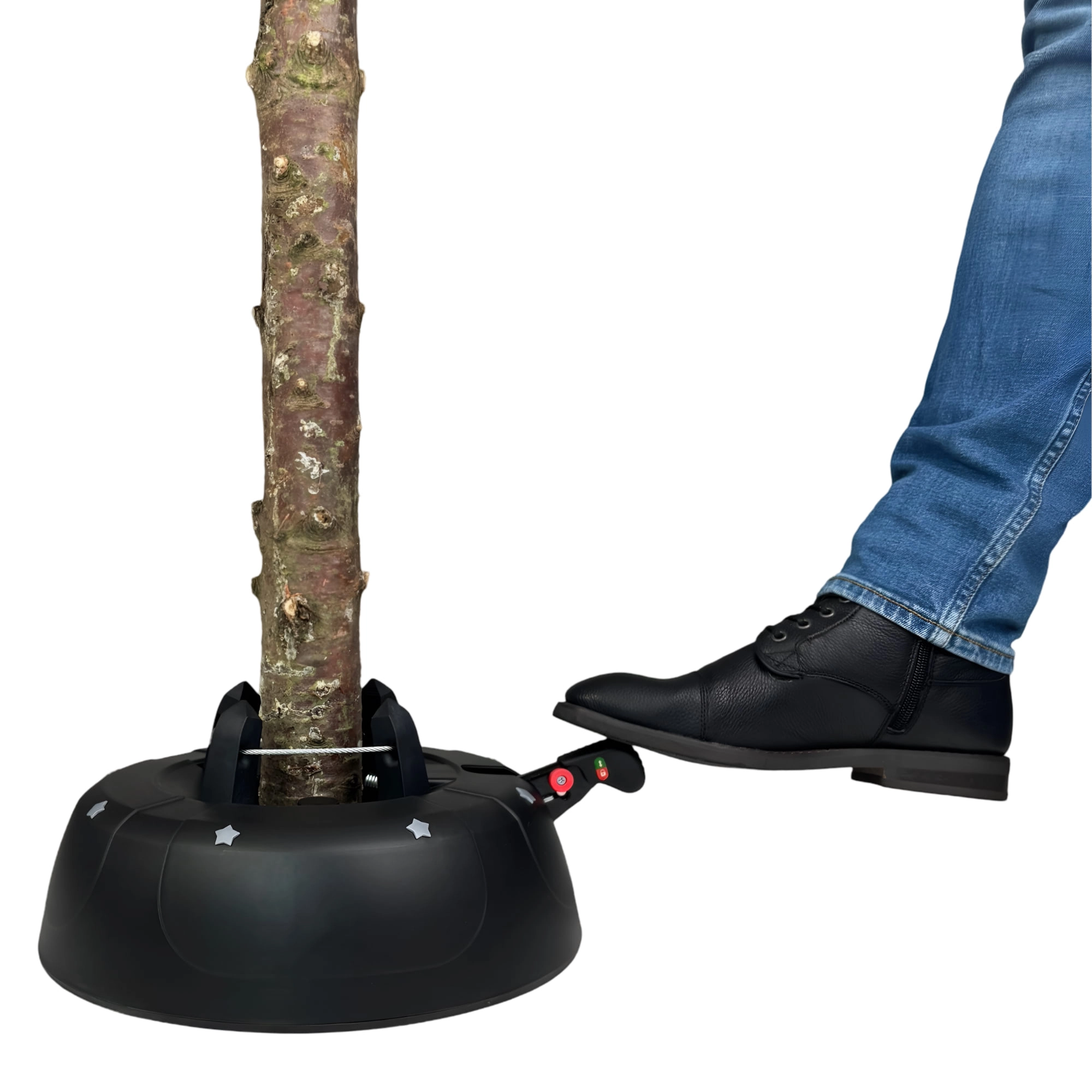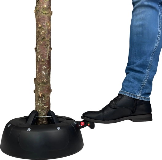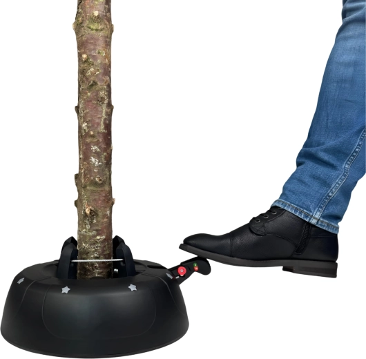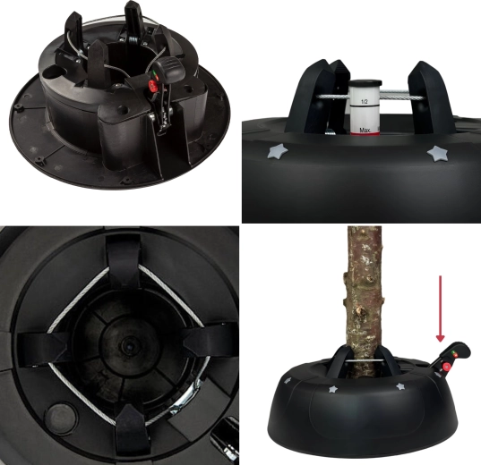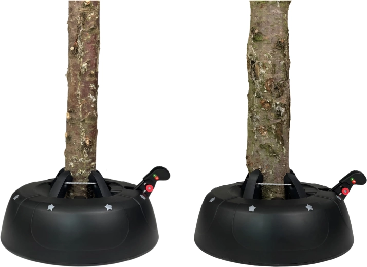 Ciesz się bezproblemowymi świętami ze stojakiem, który dba o wszystko – od szybkiego zamocowania drzewka po jego długotrwałą świeżość. Opatentowany system czterech automatycznych stalowych haczyków pewnie obejmuje pień w kilka sekund, a szeroka i ciężka podstawa gwarantuje stabilność przez cały okres świąteczny.