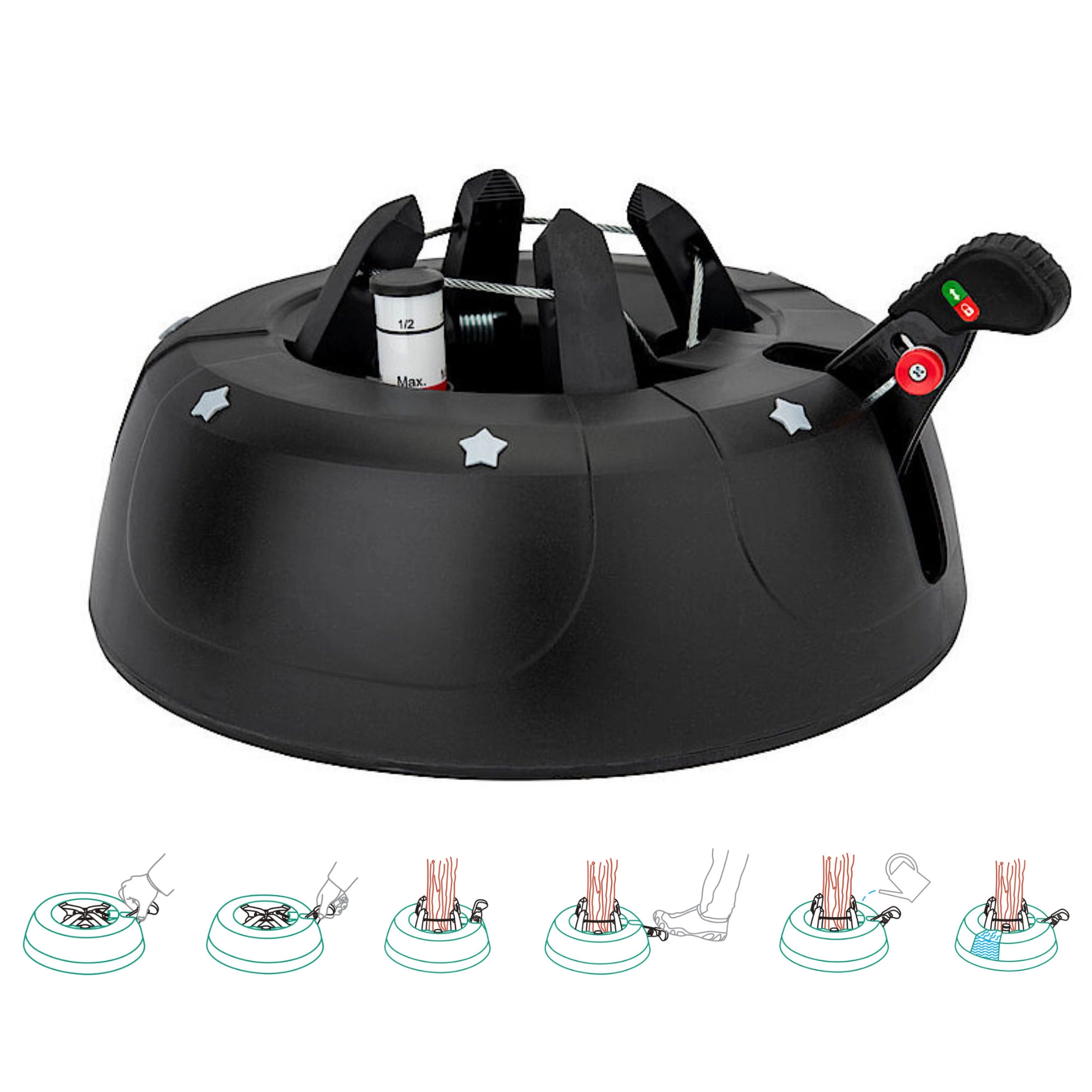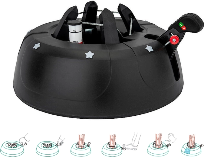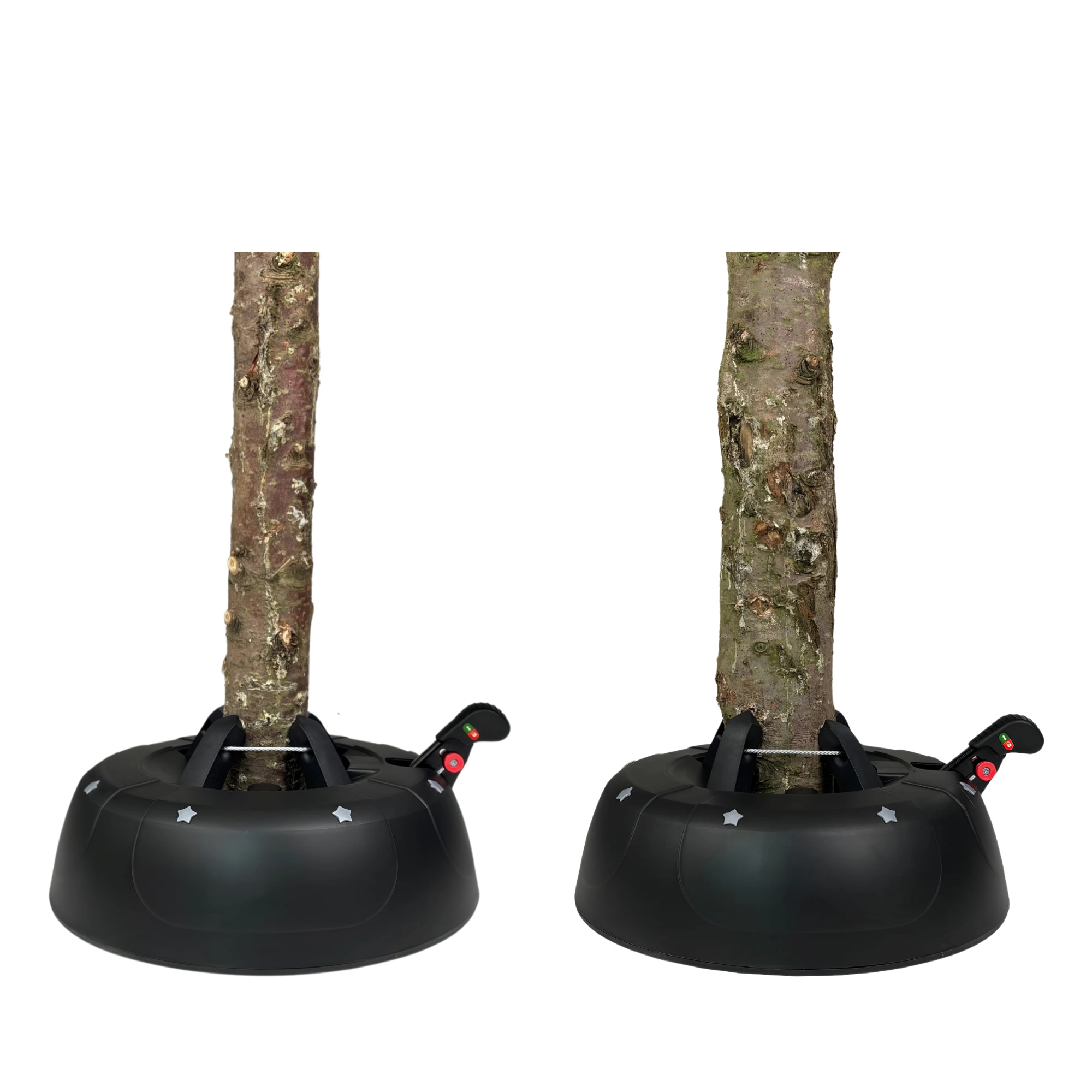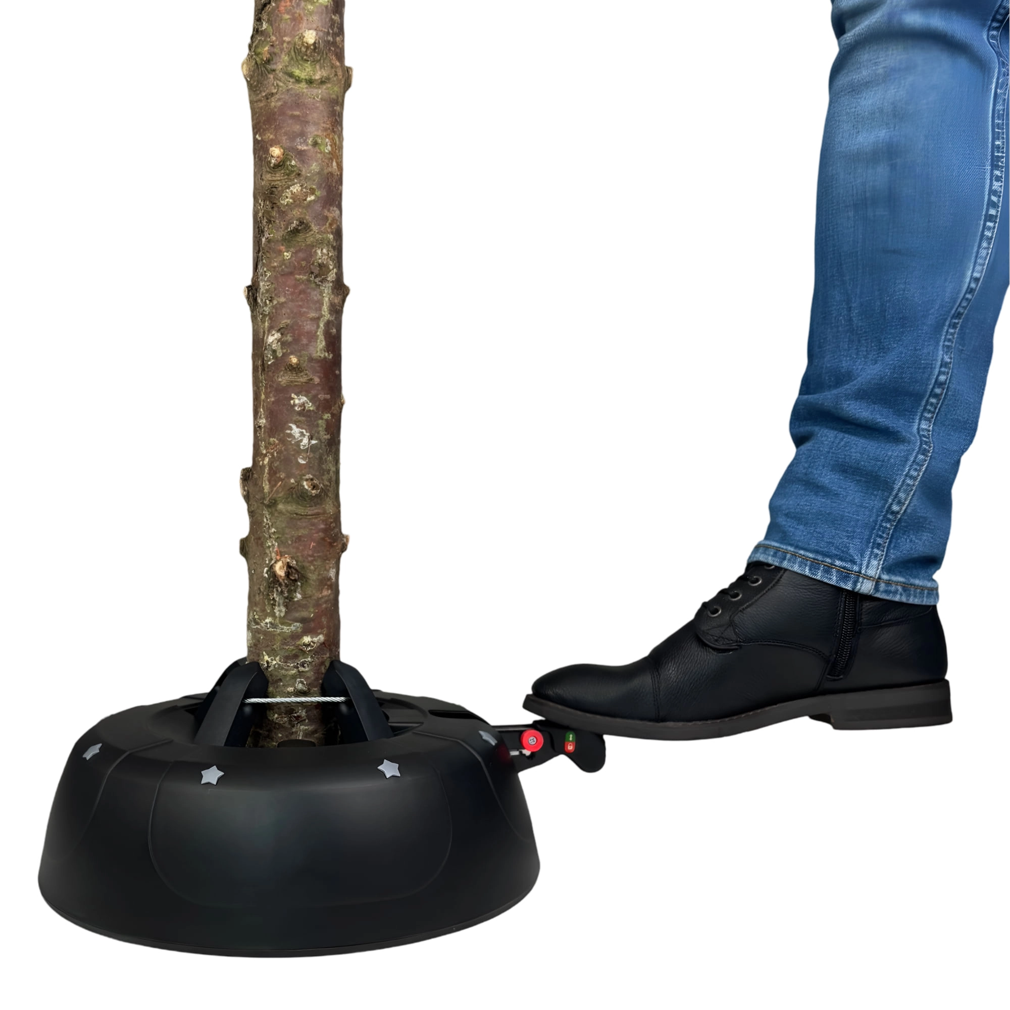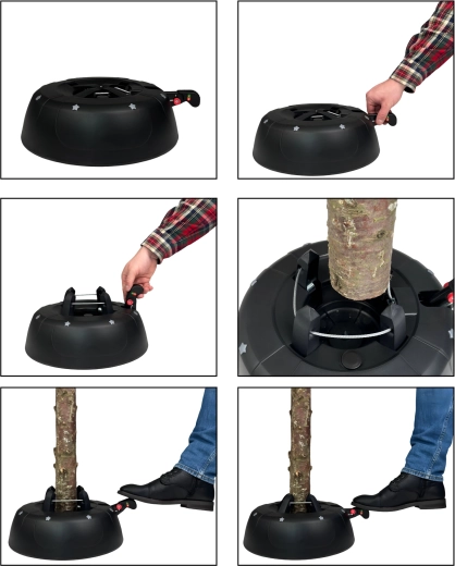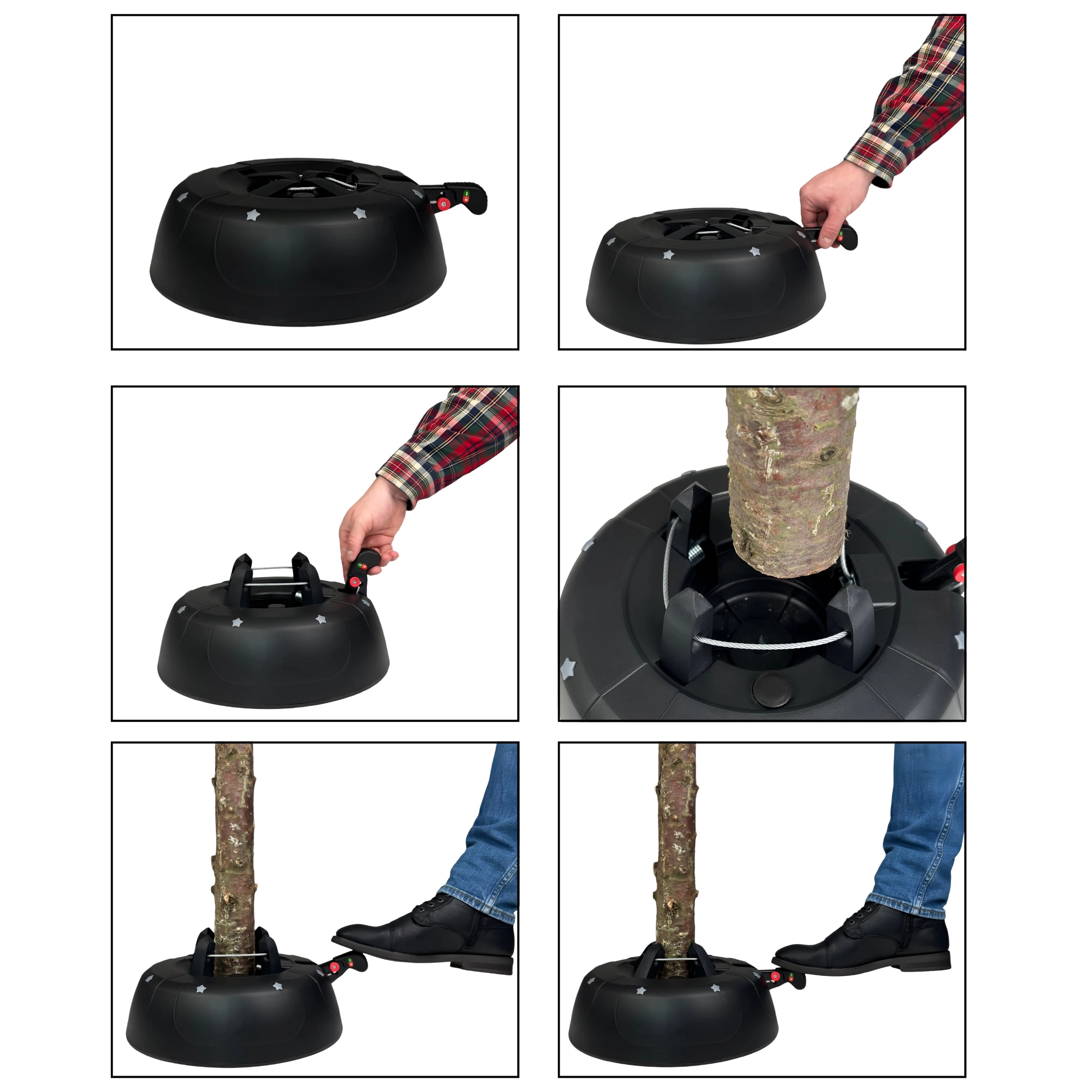 Ciesz się bezproblemowymi świętami ze stojakiem, który dba o wszystko – od szybkiego zamocowania drzewka po jego długotrwałą świeżość. Opatentowany system czterech automatycznych stalowych haczyków pewnie obejmuje pień w kilka sekund, a szeroka i ciężka podstawa gwarantuje stabilność przez cały okres świąteczny.