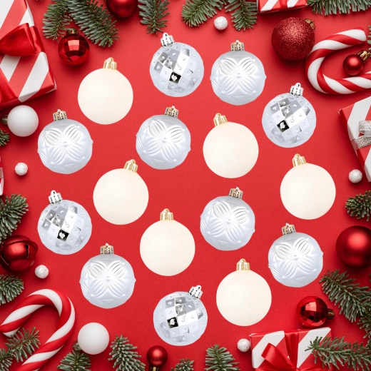 Stwórz stylową choinkę dzięki zestawowi 16 srebrnych bombek o średnicy 6 cm. Wykonane z nietłukącego się plastiku, lekkie i bezpieczne, o błyszczącym i matowym wykończeniu. Świetnie pasują do tradycyjnych i nowoczesnych dekoracji, a dzięki dołączonym sznureczkom do zawieszania ich montaż jest szybki i wygodny.