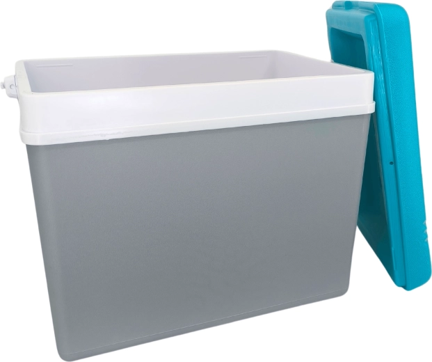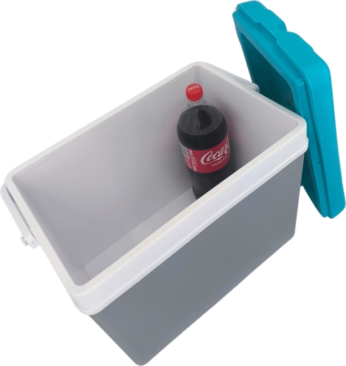 Turystyczna pasywna torba chłodząca 35 l KAMAI EDA, szara z turkusową pokrywą