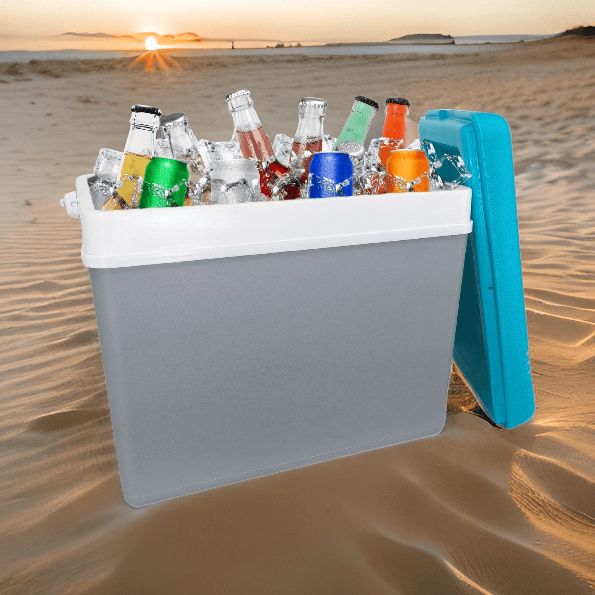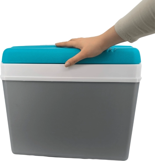Izolowana konstrukcja z szczelną pokrywą utrzymuje niską temperaturę przez długi czas – idealna na piknik, kemping lub plażę.
