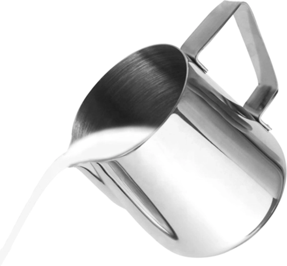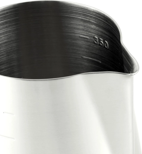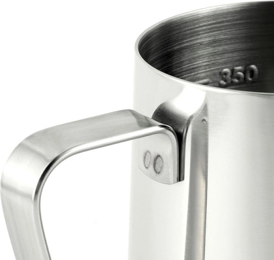Praktyczny stalowy dzbanek do spieniania mleka. Wygodny uchwyt i dziobek ułatwiają nalewanie. Praktyczna miarka z wewnętrzną podziałką co 50 ml. Solidna stalowa konstrukcja zapewnia długie i bezproblemowe użytkowanie.