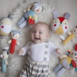 Ta miękka, ręcznie wykonana lisica to idealny towarzysz dla maluszków od urodzenia. Dzięki kompaktowym wymiarom wygodnie mieści się w małych rączkach, piszczy i delikatnie grzechocze, stymulując zmysły oraz koordynację.