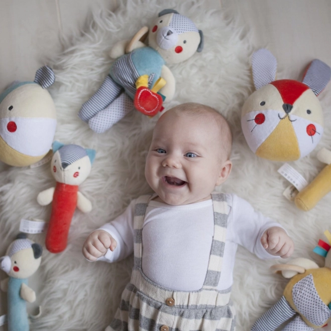 Zrównoważona produkcja jest wsparta użyciem organicznej bawełny z certyfikatem GOTS, materiałów z recyklingu oraz nietoksycznych barwników. Zabawka jest lekka, łatwa do chwytania i bezpieczna dla maluszków 0+, idealna do wózka, łóżeczka i do domu.