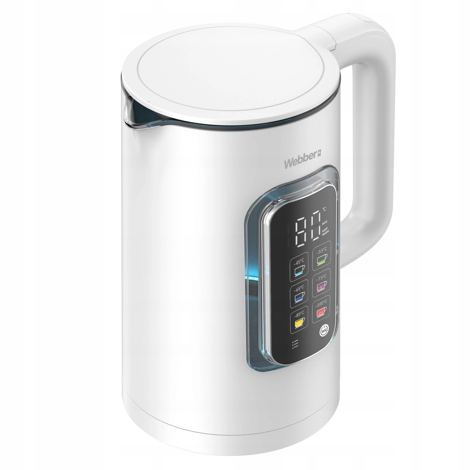 WEBBER ELIYA to nowoczesny czajnik zaprojektowany dla miłośników herbaty i kawy, którzy oczekują maksymalnej kontroli nad temperaturą. Łatwo wybierzesz idealne podgrzewanie dla delikatnych herbat, kawy czy napojów dla dzieci. Szklane wnętrze zachowuje czysty smak wody, a eleganckie białe korpus z podświetlanym wyświetlaczem pasuje do każdej kuchni.