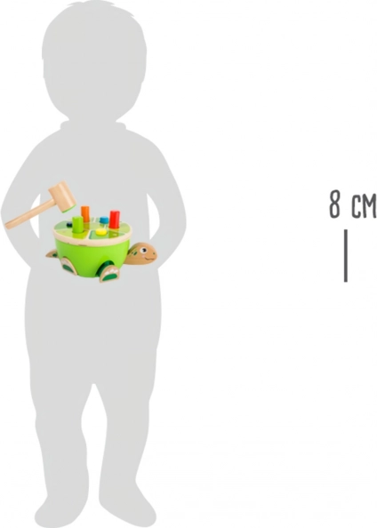 Kolorowe kołki dzieci wbijają w pancerz żółwia, jednocześnie ćwicząc chwyt, precyzję i koordynację ręka–oko. Efekt pop-up gwarantuje niekończącą się zabawę.