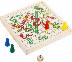 Gra planszowa „Węże i drabiny” oferuje zabawę dla całej rodziny. Celem gry jest dotarcie od 1 do 100 i zaskoczenie swoich przeciwników. Jeśli staniesz na polu z wężem, droga się wydłuży, podczas gdy drabina przybliży cię do mety. Gra jest kompaktowa, a wszystkie elementy są bezpiecznie przechowywane we własnym pudełku, które jednocześnie pełni rolę planszy.