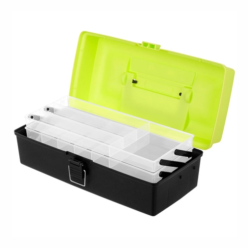 Szukasz sposobu, by mieć wędkarskie akcesoria zawsze pod ręką i w porządku? Pudełko wędkarskie TRIZAND oferuje praktyczną organizację z szybkim dostępem dzięki 2 półkom i 11 przegródkom. Wytrzymała konstrukcja, pewne zatrzaskowe zamknięcie oraz wygodny uchwyt gwarantują bezpieczny transport i komfort na każdej wyprawie.
