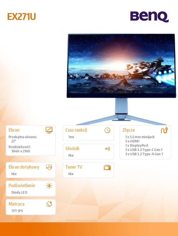 Rozdzielczość 3840 × 2160 (4K) oferuje dużo miejsca do multitaskingu, edycji zdjęć i wideo oraz czytelne detale w grach. Szerokie kąty widzenia panelu IPS gwarantują spójne kolory niezależnie od tego, skąd patrzysz. Monitor to znakomity wybór dla graczy, twórców treści i wymagających użytkowników, którzy oczekują najwyższej jakości obrazu i płynności.