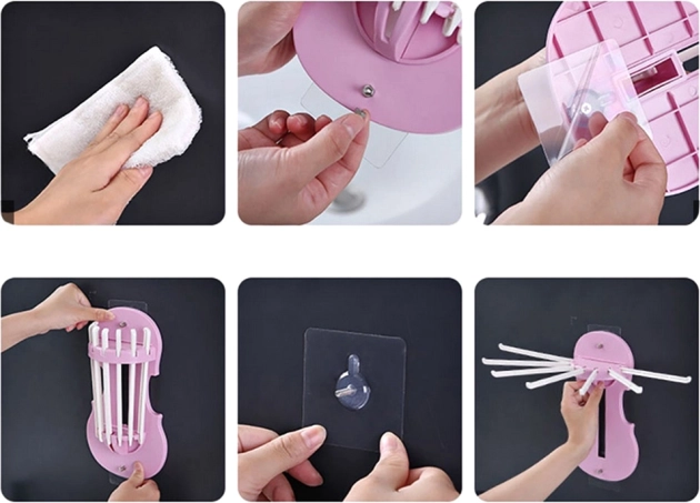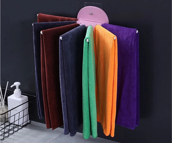 Wieszak na ręczniki do łazienki i kuchni oferuje efektywne rozwiązanie do przechowywania. Można go łatwo zamocować za pomocą naklejek, co zapewnia bezpieczne i solidne mocowanie. Po użyciu łatwo go złożyć, aby nie zajmował niepotrzebnie miejsca.