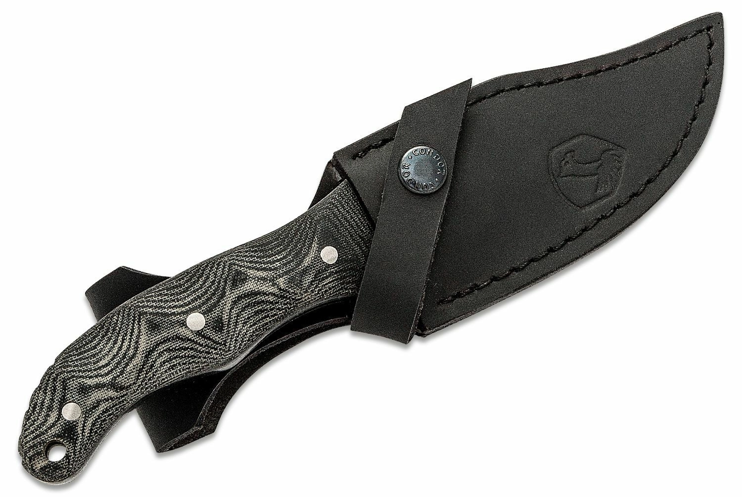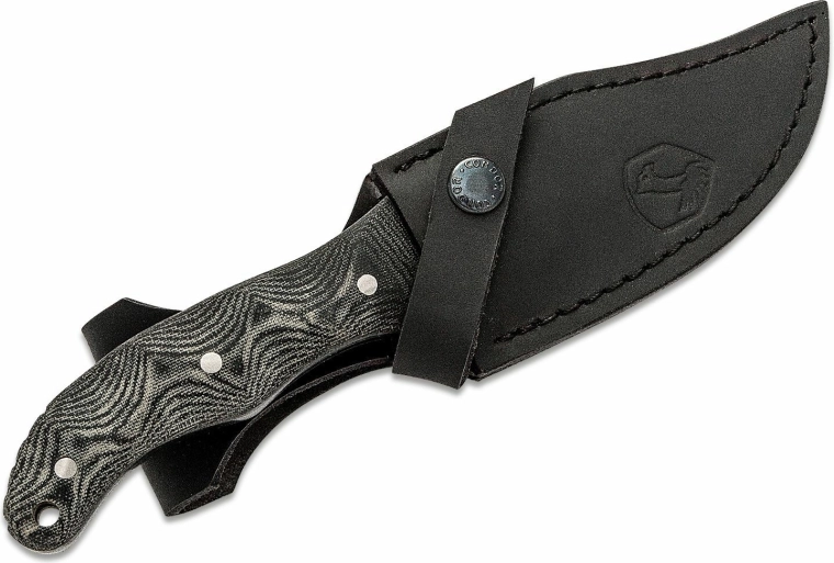 Konstrukcja full-tang zapewnia wysoką wytrzymałość i długą żywotność. Profilowana rękojeść z Micarty w szarym kolorze świetnie leży w dłoni, również w rękawicach, i oferuje pewny chwyt zarówno na sucho, jak i na mokro. Skórzane etui umożliwia wygodne i bezpieczne noszenie na pasie.