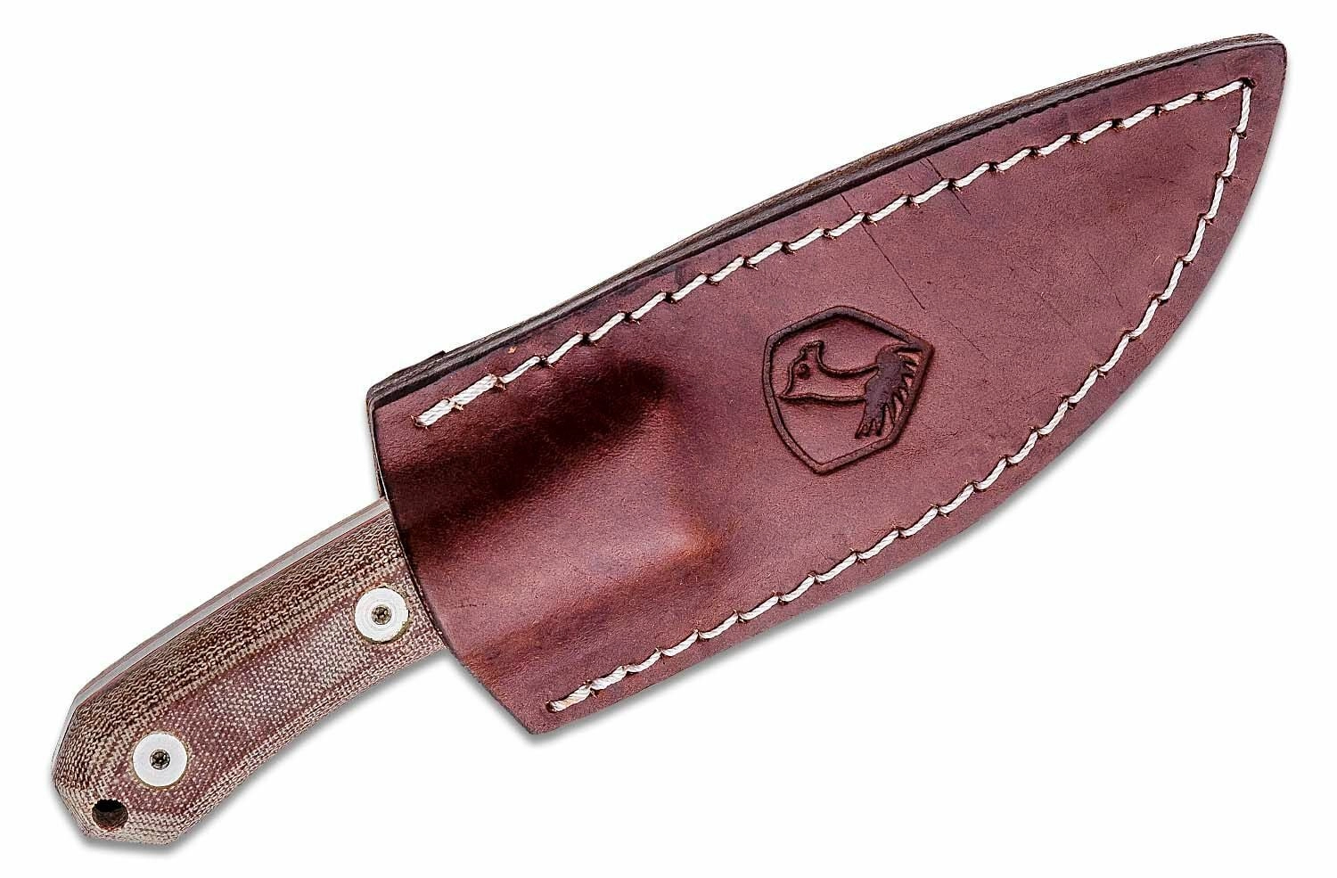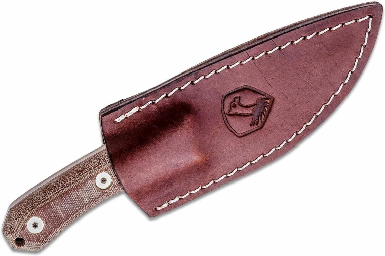 Ergonomiczna rękojeść z Micarty w brązowym odcieniu Tan ma chropowatszą fakturę dla pewnego chwytu zarówno na sucho, jak i na mokro. Oczko na linkę poszerza możliwości zabezpieczenia lub zawieszenia. W zestawie znajduje się wysokiej jakości skórzane etui do bezpiecznego i wygodnego noszenia na pasie.