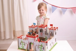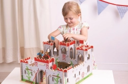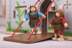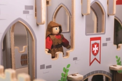 Zamek łatwo się składa poprzez wsuwanie drewnianych elementów jeden w drugi, więc zabawa może zacząć się w kilka chwil. Wykonany z wysokiej jakości, wytrzymałego drewna z naciskiem na bezpieczeństwo i długą żywotność. Zabawa zamkiem wspiera umiejętności komunikacyjne, motorykę małą oraz kreatywne opowiadanie.