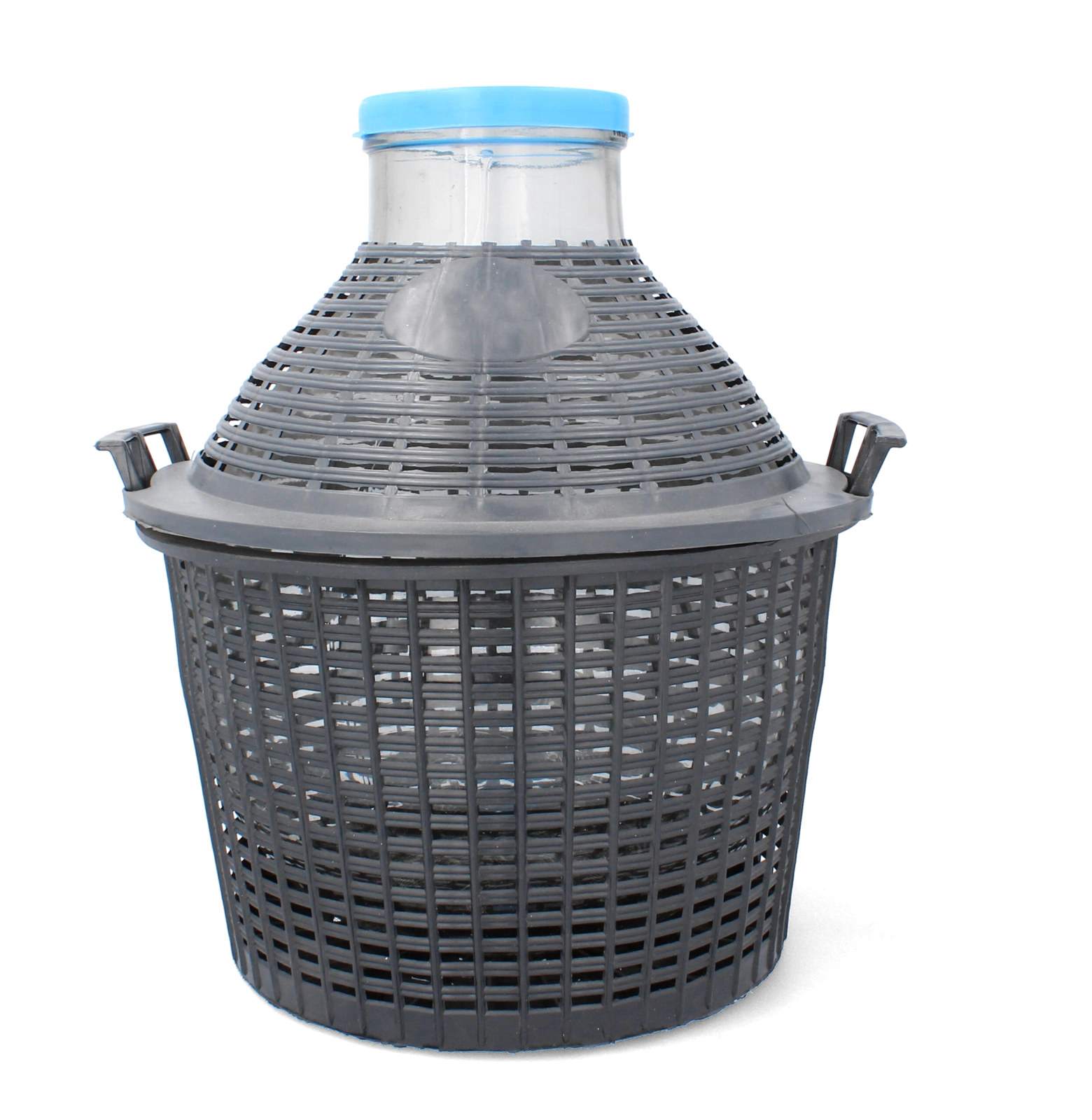W zestawie znajduje się plastikowy kosz ochronny z solidnymi uchwytami do bezpiecznego przenoszenia pustego naczynia. W stanie pełnym zalecamy przenosić gąsior, trzymając za dno. Dla perfekcyjnej higieny przed każdym użyciem dokładnie umyj i zdezynfekuj naczynie (np. pirosiarczynem potasu).
