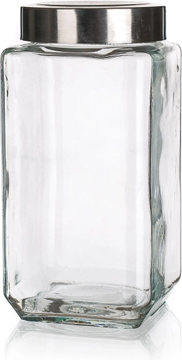 Szklany kwadratowy pojemnik AKCENT 1 l z pokrywką ze stali nierdzewnej