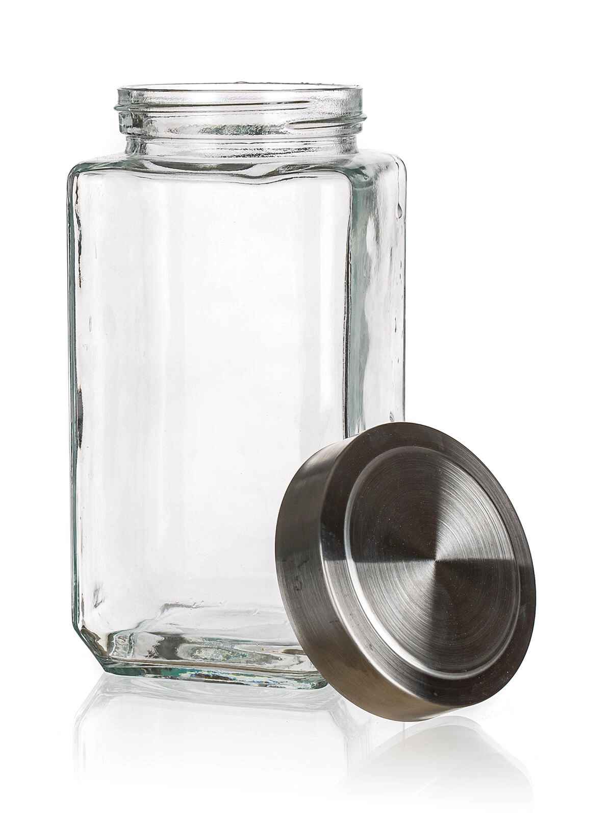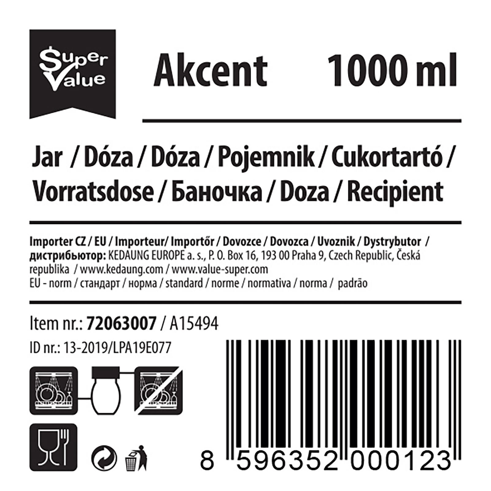 Praktyczny szklany pojemnik AKCENT o pojemności 1 l z elegancką pokrywką ze stali nierdzewnej jest idealny do codziennej organizacji kuchni. Utrzymuje żywność dłużej świeżą i przejrzyście uporządkowaną. Odpowiedni na przyprawy, makaron, rośliny strączkowe czy cukier.