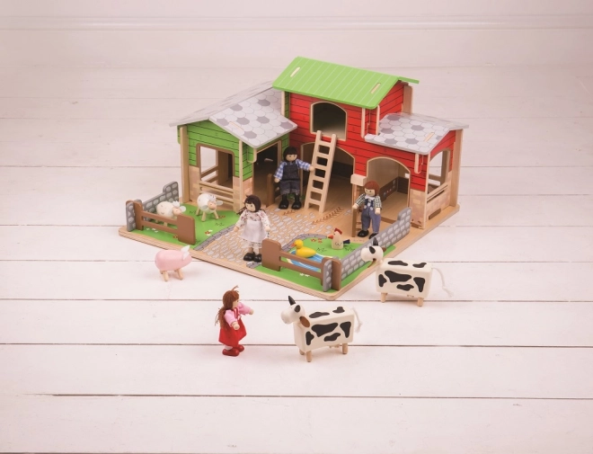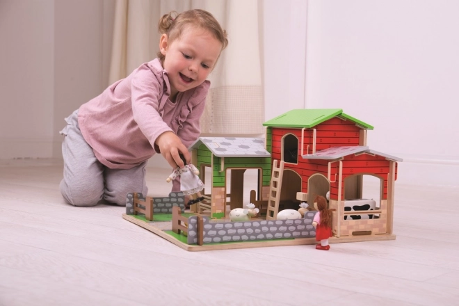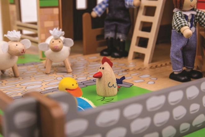 Zestaw wykonano z wysokiej jakości drewna z odpowiedzialnych źródeł i jest kompatybilny z dodatkowymi akcesoriami, które można dokupić w każdej chwili. Realistyczne elementy, takie jak kaczy staw, garaż na traktor i zagrody z ruchomymi wrotami, wspierają zabawę wyobrażeniową, opowiadanie historii oraz rozwój małej motoryki.