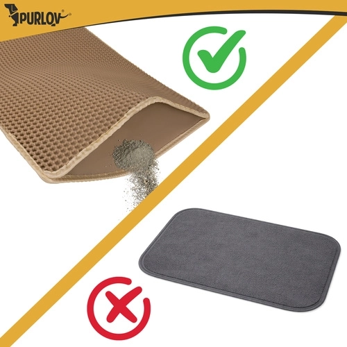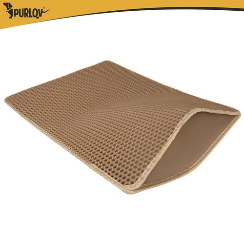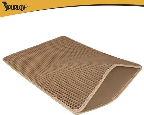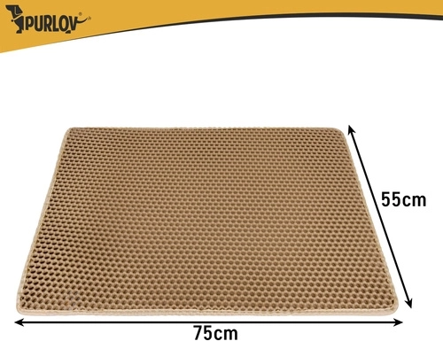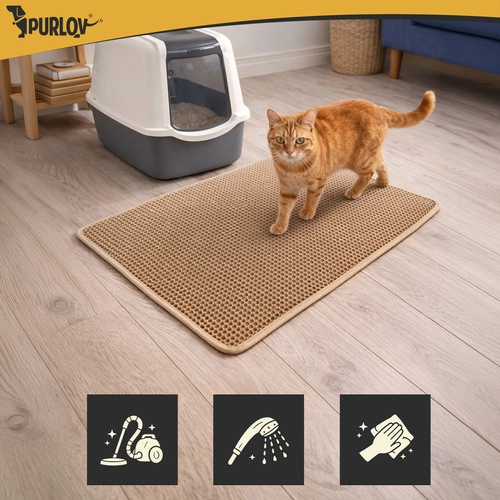 Koniec z rozsypanym żwirkiem wokół kuwety. Ta mata Purlov o wymiarach 75 × 55 cm dzięki strukturze „plastra miodu” z pianki EVA skutecznie wychwytuje granulki z łap, ma dwuwarstwową, kieszeniową konstrukcję dla łatwego wysypywania oraz wodoodporną, antypoślizgową powierzchnię, która zapewnia czystą i bezpieczną strefę wokół kociej toalety.