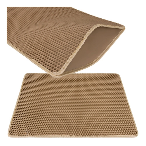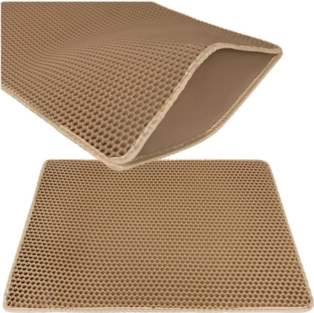 Trwała pianka EVA jest przyjemna w dotyku, wodoodporna i łatwa w czyszczeniu poprzez wytarcie lub opłukanie. Antypoślizgowy spód utrzymuje matę stabilnie na miejscu, dzięki czemu nie przesuwa się, gdy kot wychodzi z kuwety. Neutralny beżowy kolor pasuje do jasnych wnętrz i większości kocich akcesoriów.