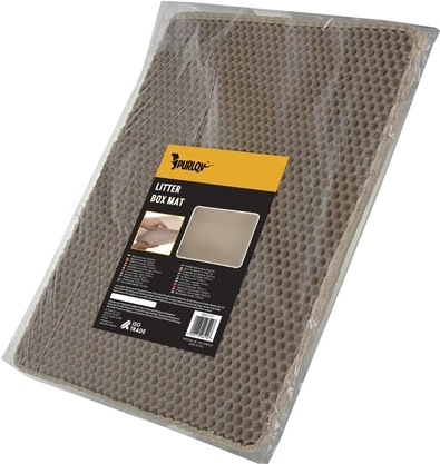 Praktyczna mata pod kuwetę Purlov utrzymuje okolice kociej toalety w czystości i porządku. Górna warstwa z strukturą plastra miodu delikatnie zbiera żwirek z łap, dolna warstwa gromadzi go w kieszeni, skąd łatwo wysypiesz go z powrotem do kuwety. Hojny rozmiar 75 × 55 cm poszerza strefę czystości także dla większych kotów.