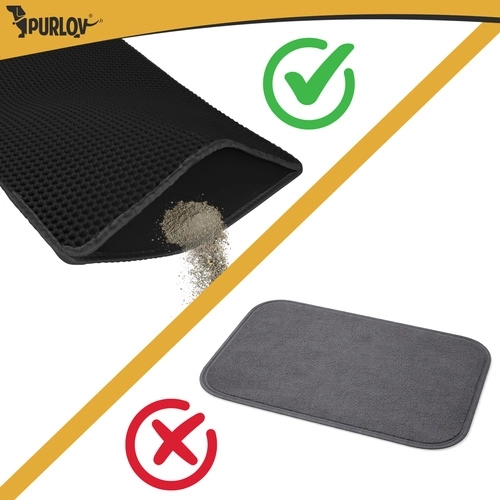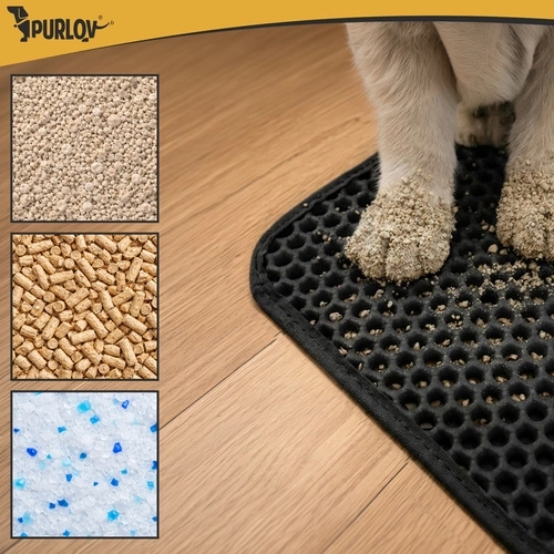 Utrzymaj porządek wokół kuwety bez codziennego zamiatania. Dwuwarstwowa mata Purlov o strukturze plastra miodu (honeycomb) z pianki EVA wyłapuje ziarenka żwirku z łapek, jest wodoodporna, a dzięki otwieranej kieszeni łatwo wsypiesz żwirek z powrotem do kuwety.