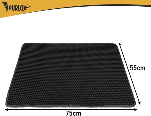 Praktyczna i wygodna mata Purlov o wymiarach 75 × 55 cm poszerza czystą strefę przy wyjściu z kuwety. Dwuwarstwowa, plasterkowa konstrukcja skutecznie zbiera żwirek, antypoślizgowy spód utrzymuje matę na miejscu, a wodoodporna powierzchnia chroni podłogę przed wilgocią i zabrudzeniami.