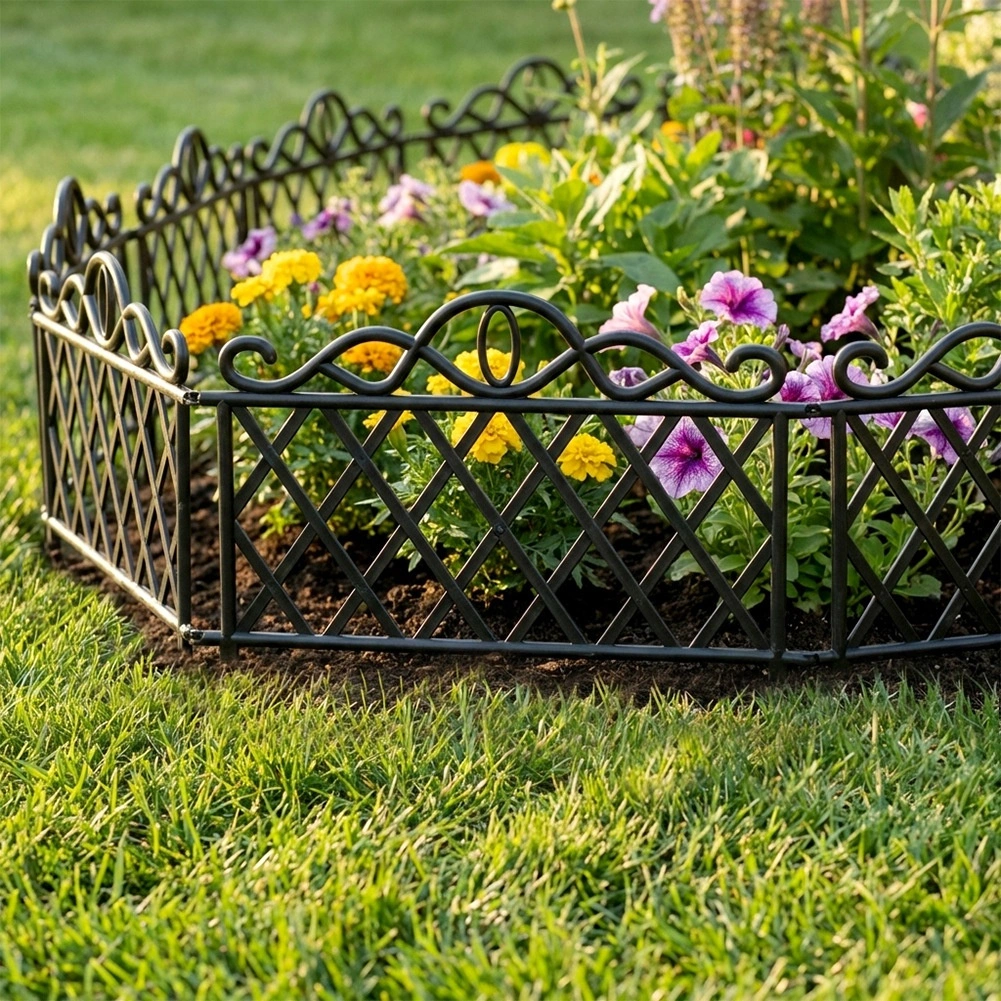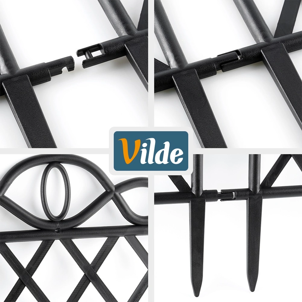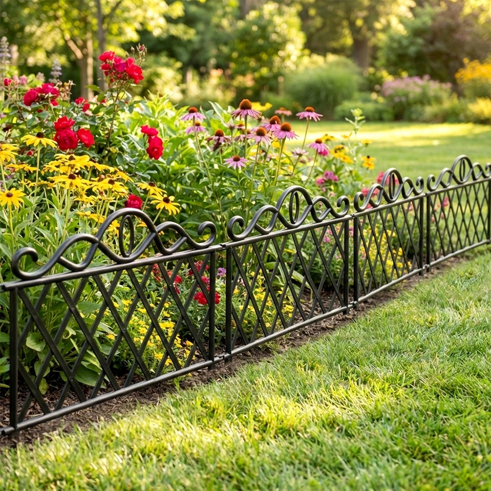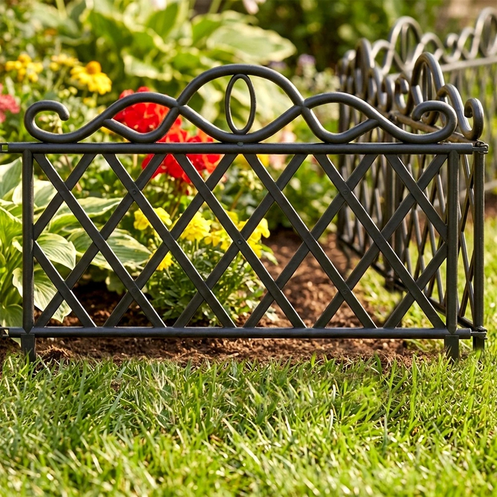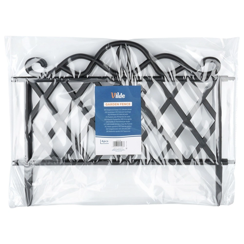 Elegancki zestaw czterech ogrodowych płotków do łatwego oddzielania rabat, trawników i ścieżek. Każdy element ma 48 cm długości i 27 cm wysokości (36 cm łącznie z kotwami). Dzięki możliwości łączenia elementów stworzysz ciągłą krawędź o długości aż 192 cm. Płotki wykonane są z wytrzymałego plastiku w czarnym kolorze, odpornego na mróz, promieniowanie UV i deszcz, a stabilne zakotwienie zapewniają zintegrowane kolce.