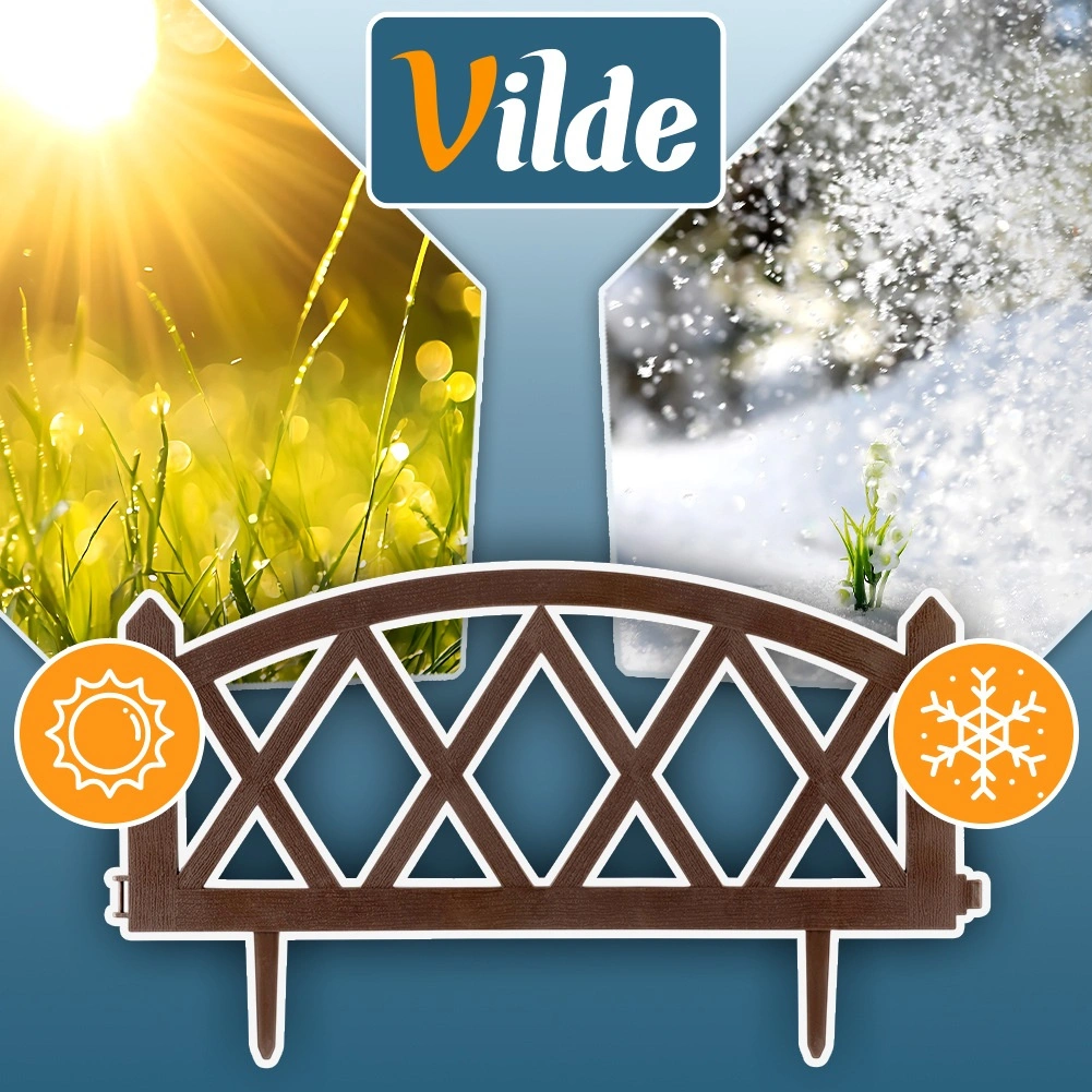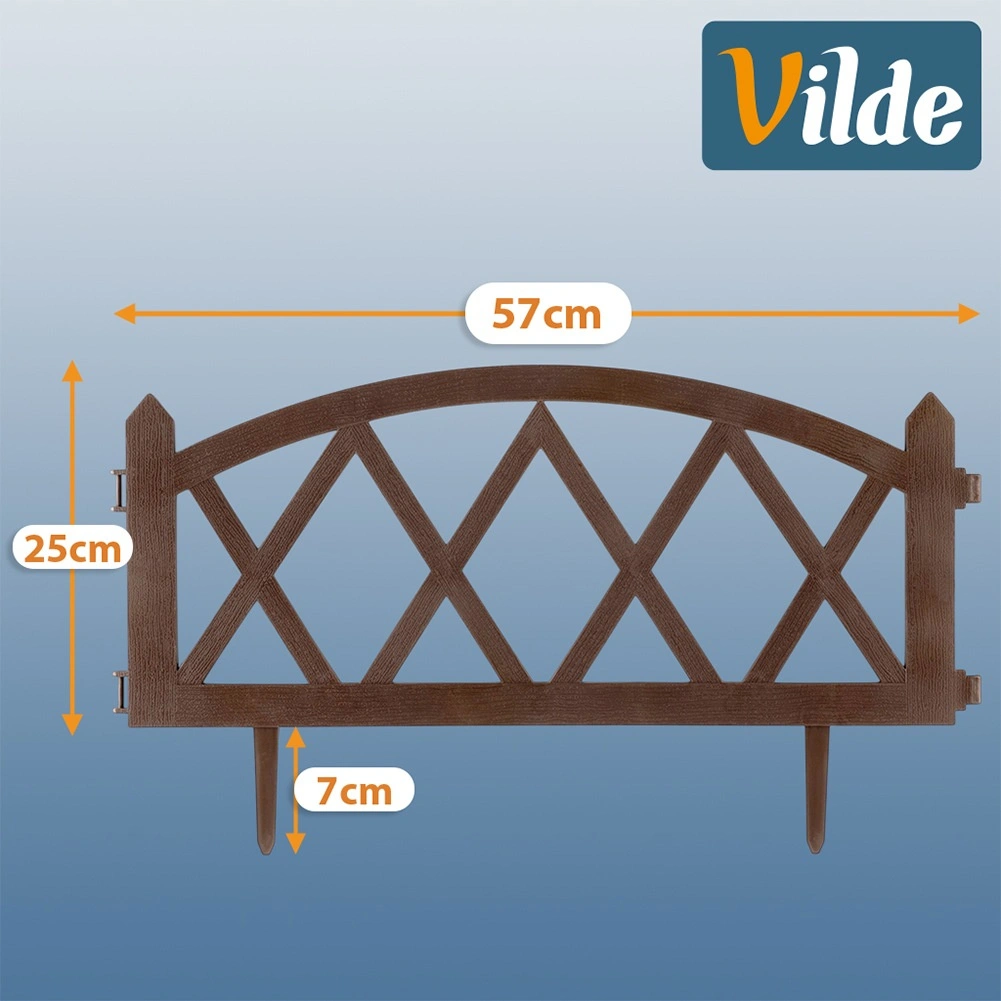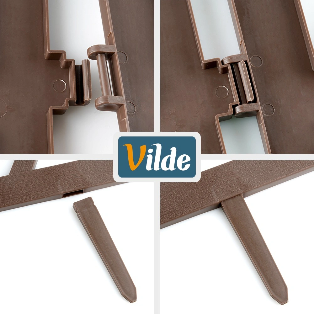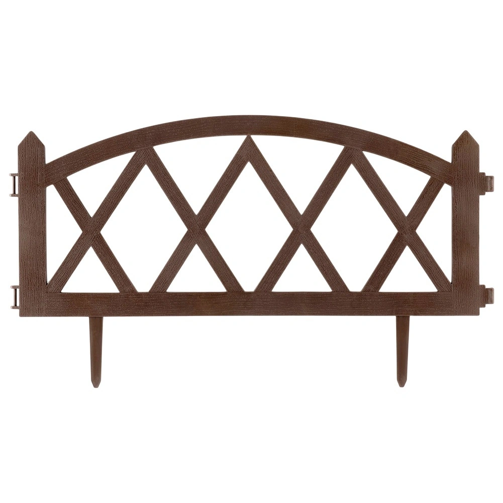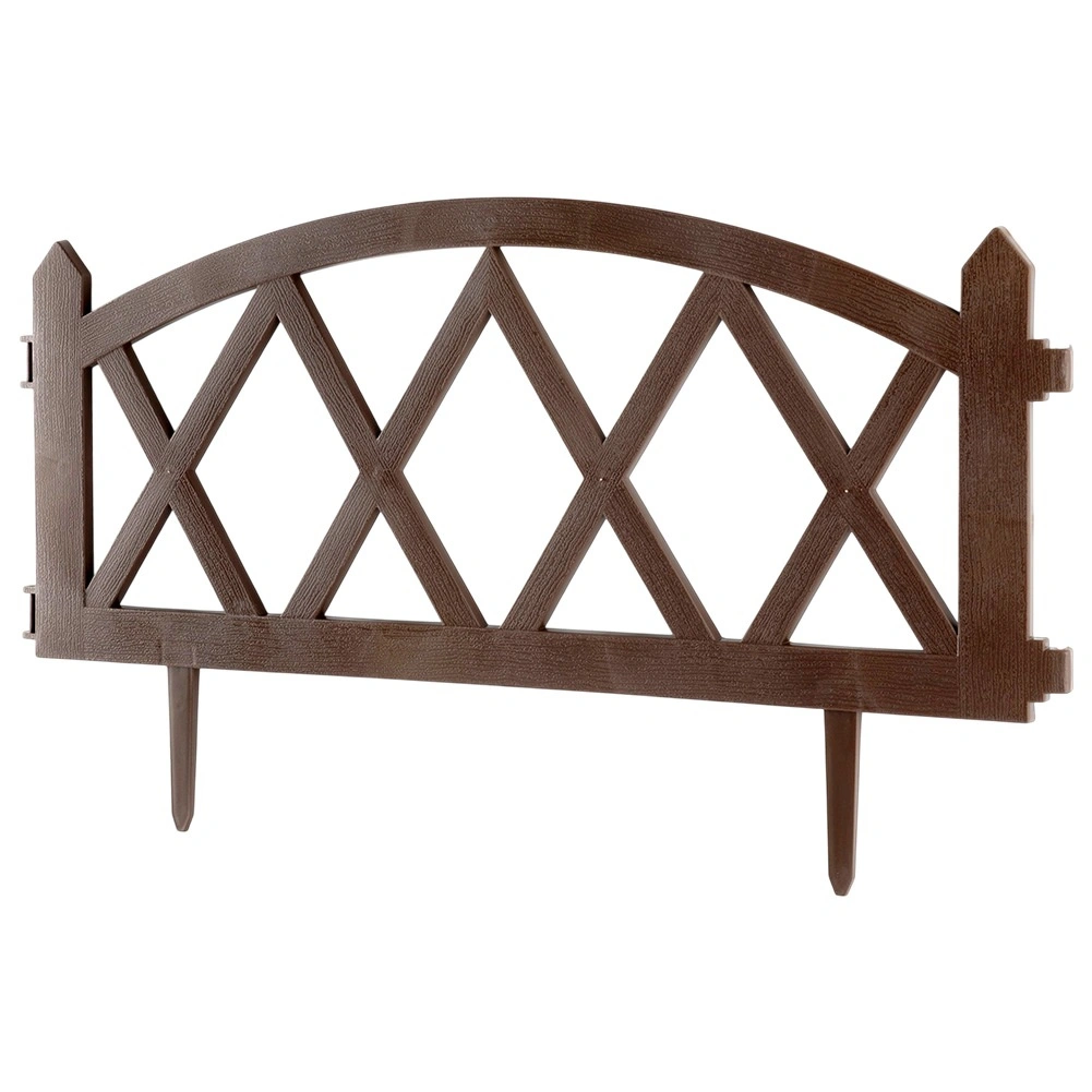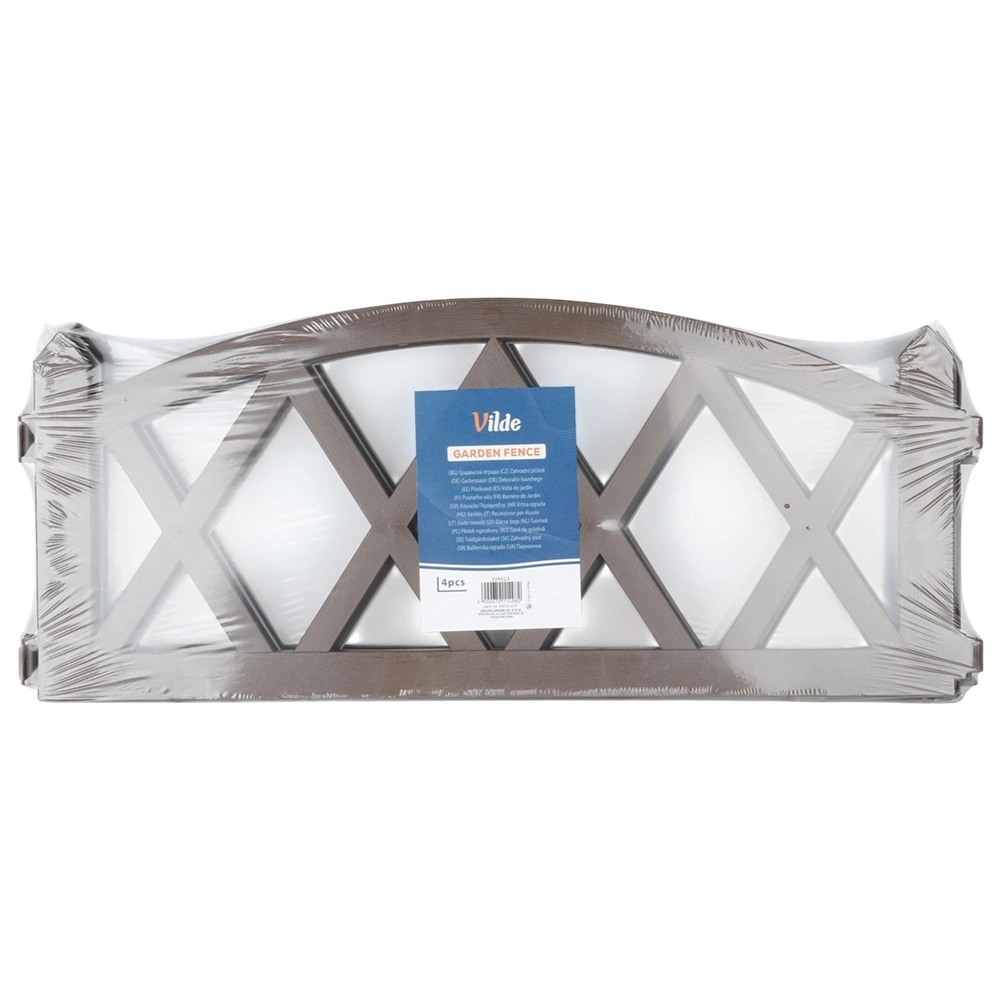 Praktyczny ogrodowy płotek w brązowym kolorze do eleganckiego oddzielania rabat, trawników i ścieżek. Zestaw 4 paneli 57 × 25 cm z mocnymi kołkami gruntowymi umożliwia łatwy montaż, modułowe łączenie do dowolnej długości (do 228 cm w linii prostej) oraz odporność na mróz, UV i deszcz.