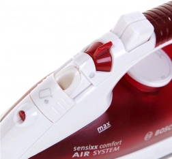 Ergonomiczny uchwyt zapewnia wygodne trzymanie podczas prasowania.
