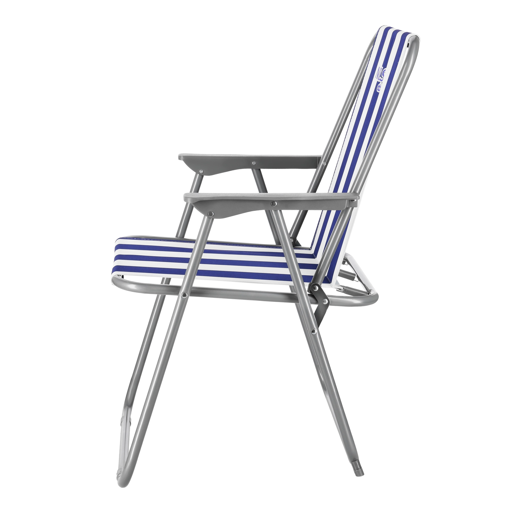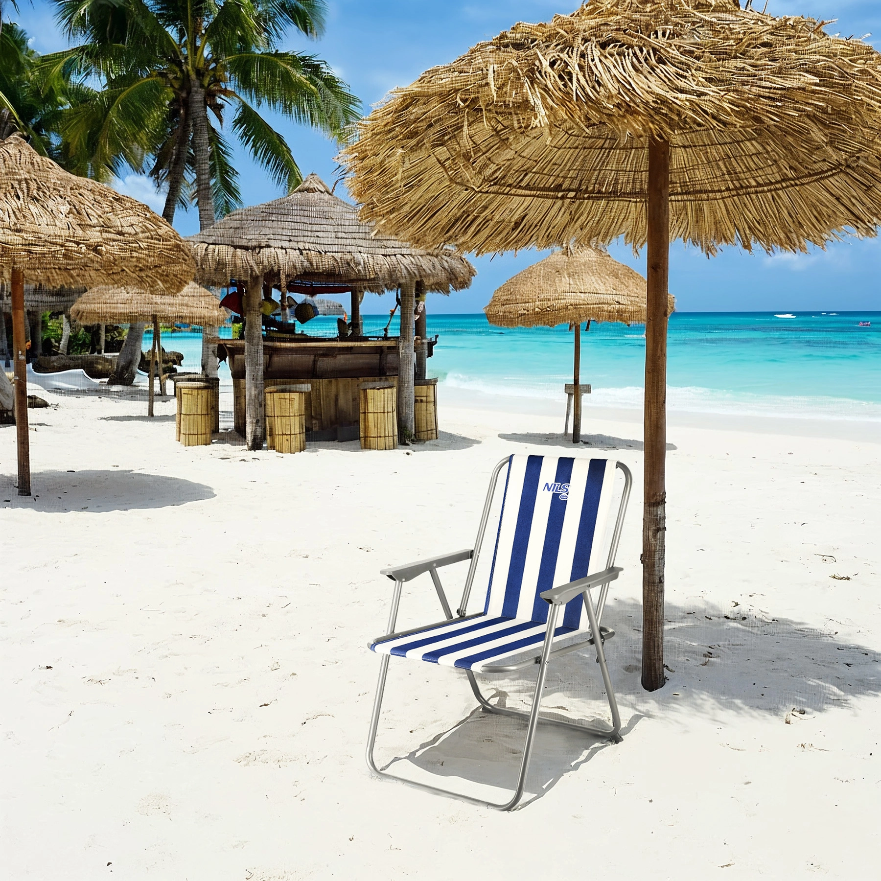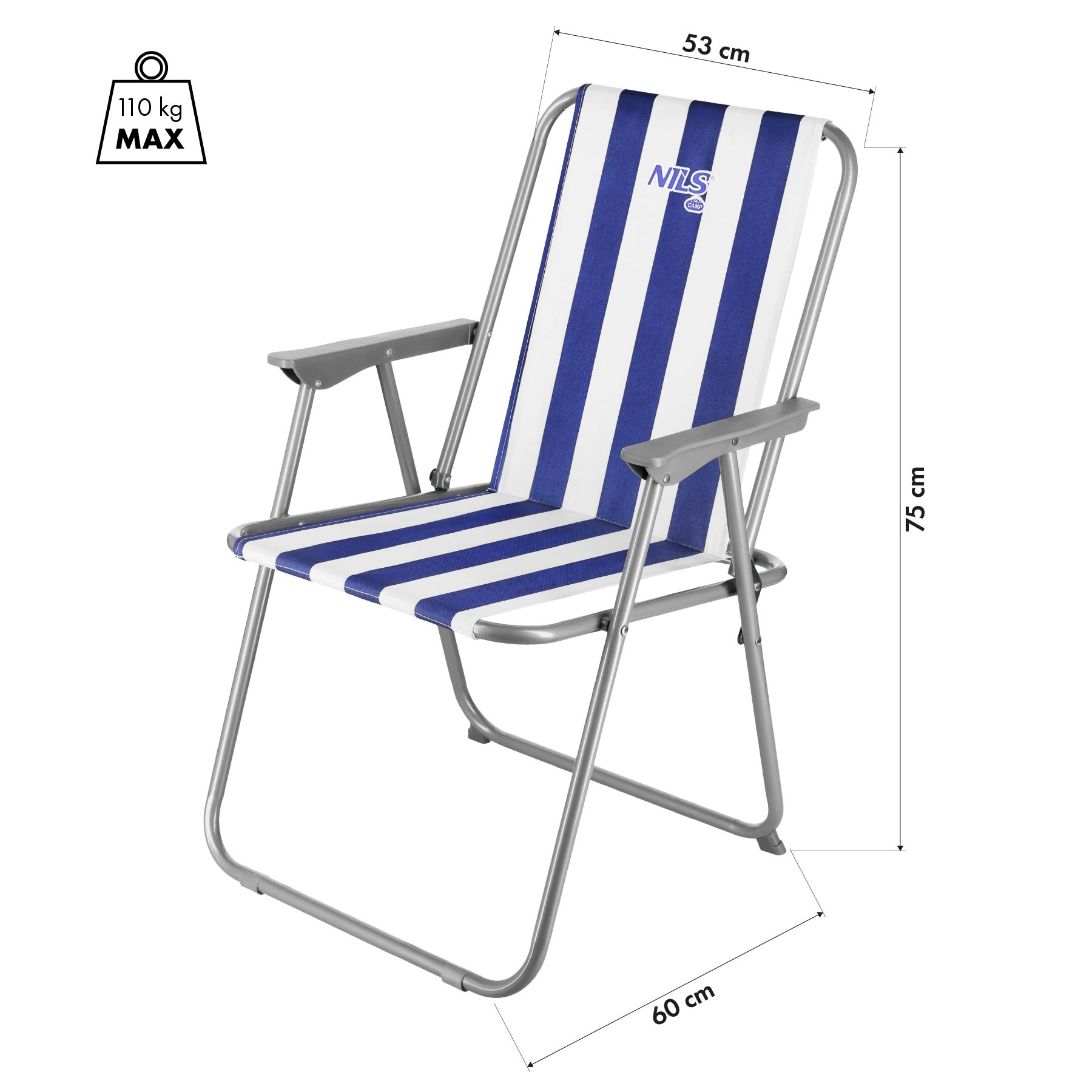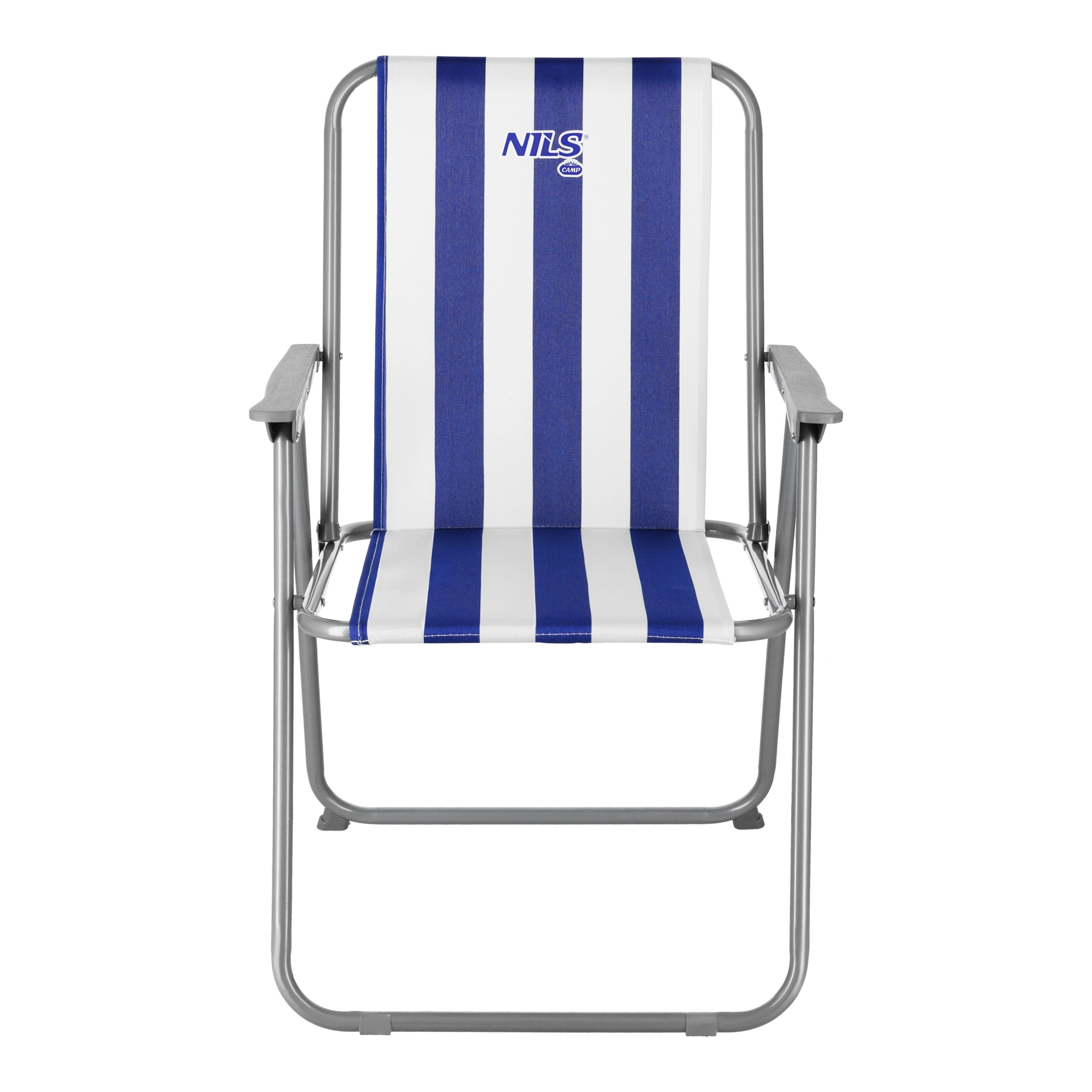 Składane krzesło NILS Camp w niebiesko-białe paski to praktyczny towarzysz wszystkich aktywności na zewnątrz. Dzięki stalowej ramie jest stabilne na trawie, piasku i kostce, a wytrzymała tkanina 600D Oxford zapewnia wygodę podczas krótkiego odpoczynku i dłuższego siedzenia.