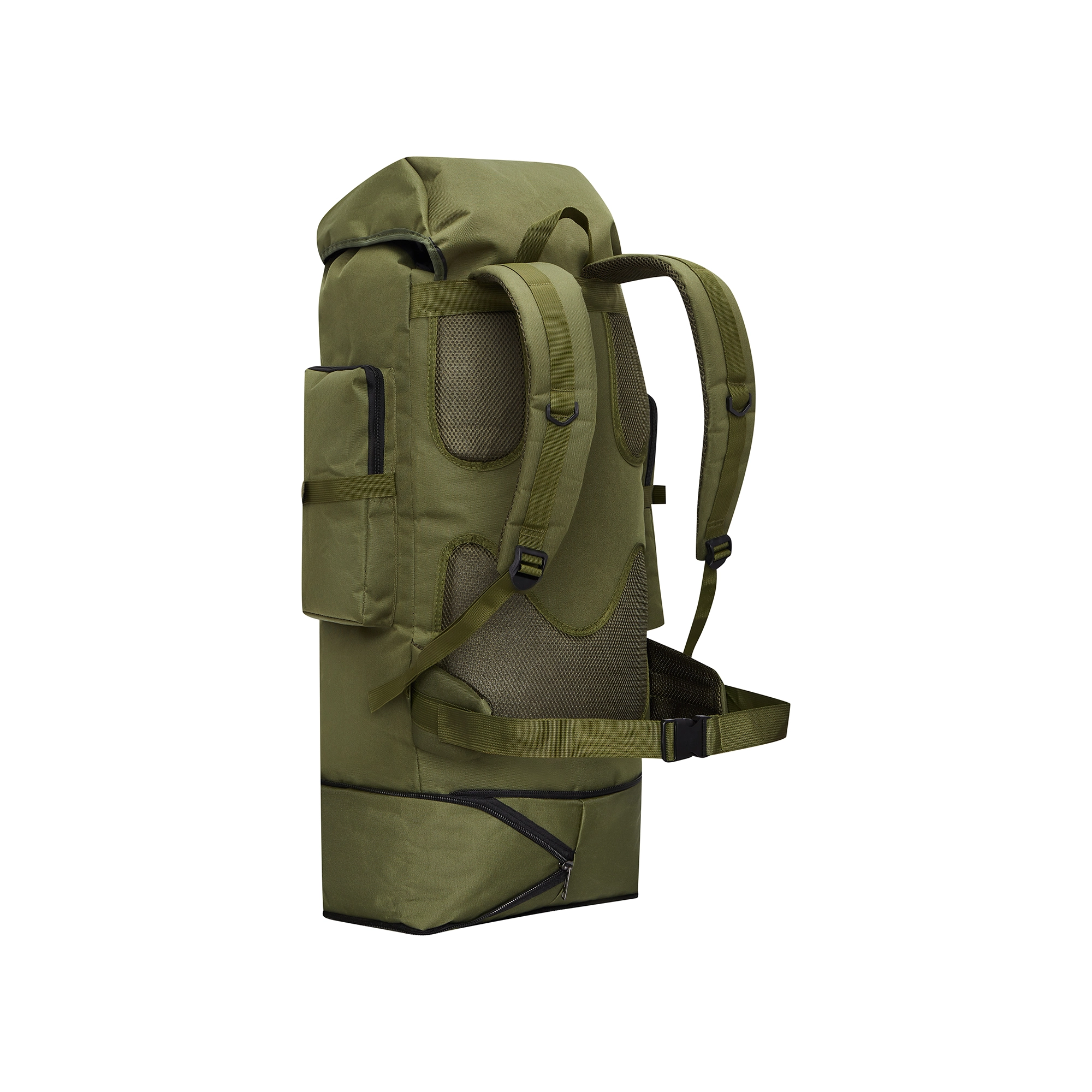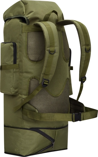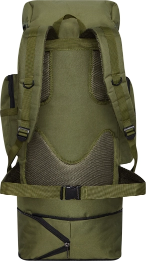 Główna komora z ściąganą przegrodą, pięć przednich kieszeni oraz górne i dolne paski do przymocowania karimaty, namiotu czy innych akcesoriów.