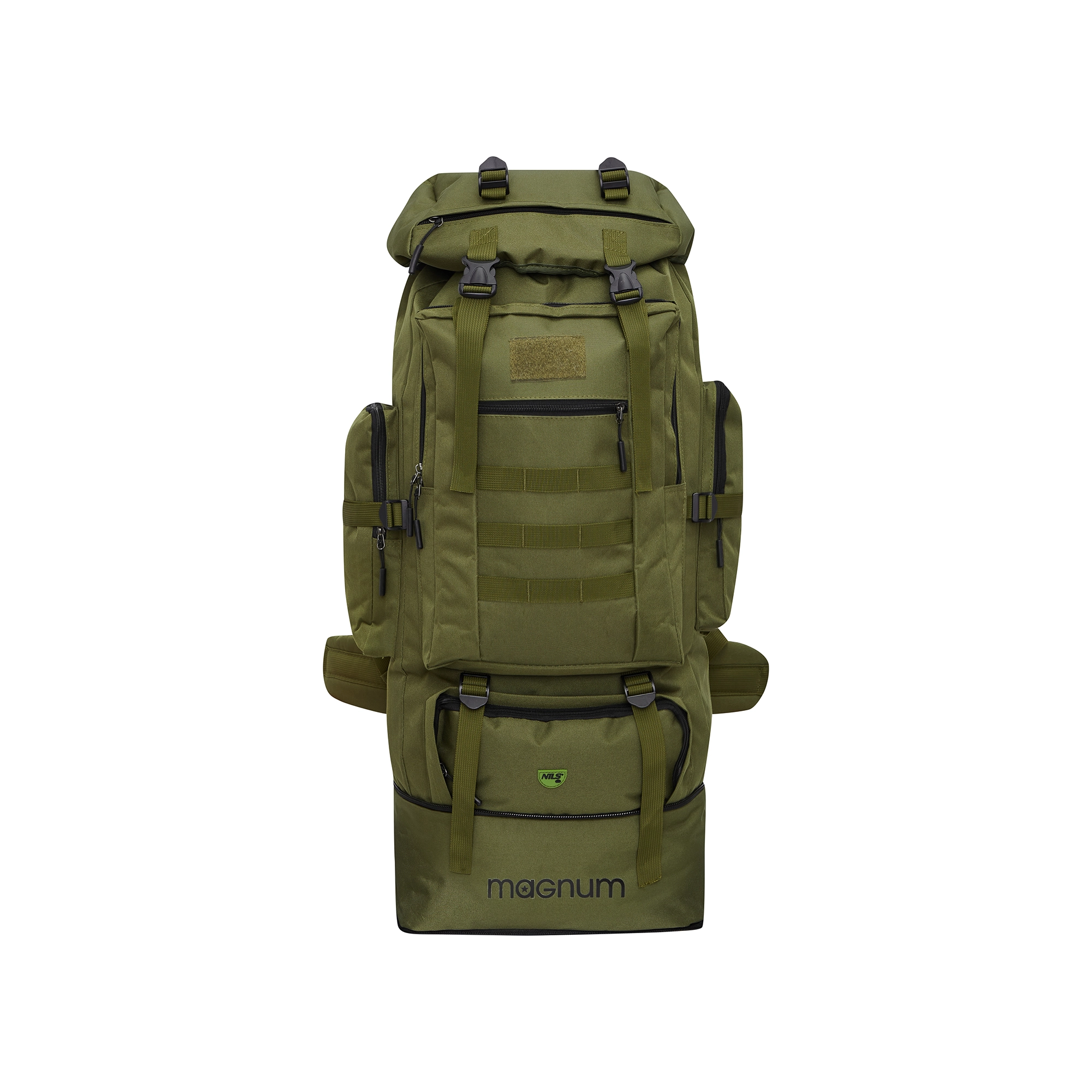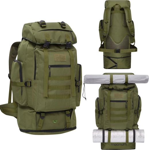 Pojemny taktyczny plecak NILS Camp MAGNUM o pojemności 100 l oferuje maksymalną ładowność, wytrzymały materiał 600D Oxford, możliwość skrócenia za pomocą dolnego zamka oraz przemyślaną organizację ekwipunku. Dzięki przegrodzie ściąganej sznurkiem, punktom mocowania MOLLE/akcesoriów, pasom kompresyjnym i systemowi Nils Vent System zapewniającemu cyrkulację powietrza, noszenie pozostaje wygodne nawet podczas długich wędrówek. Materiał jest odporny na zachlapania, więc Twój sprzęt pozostanie bezpieczny także podczas przelotnych opadów.