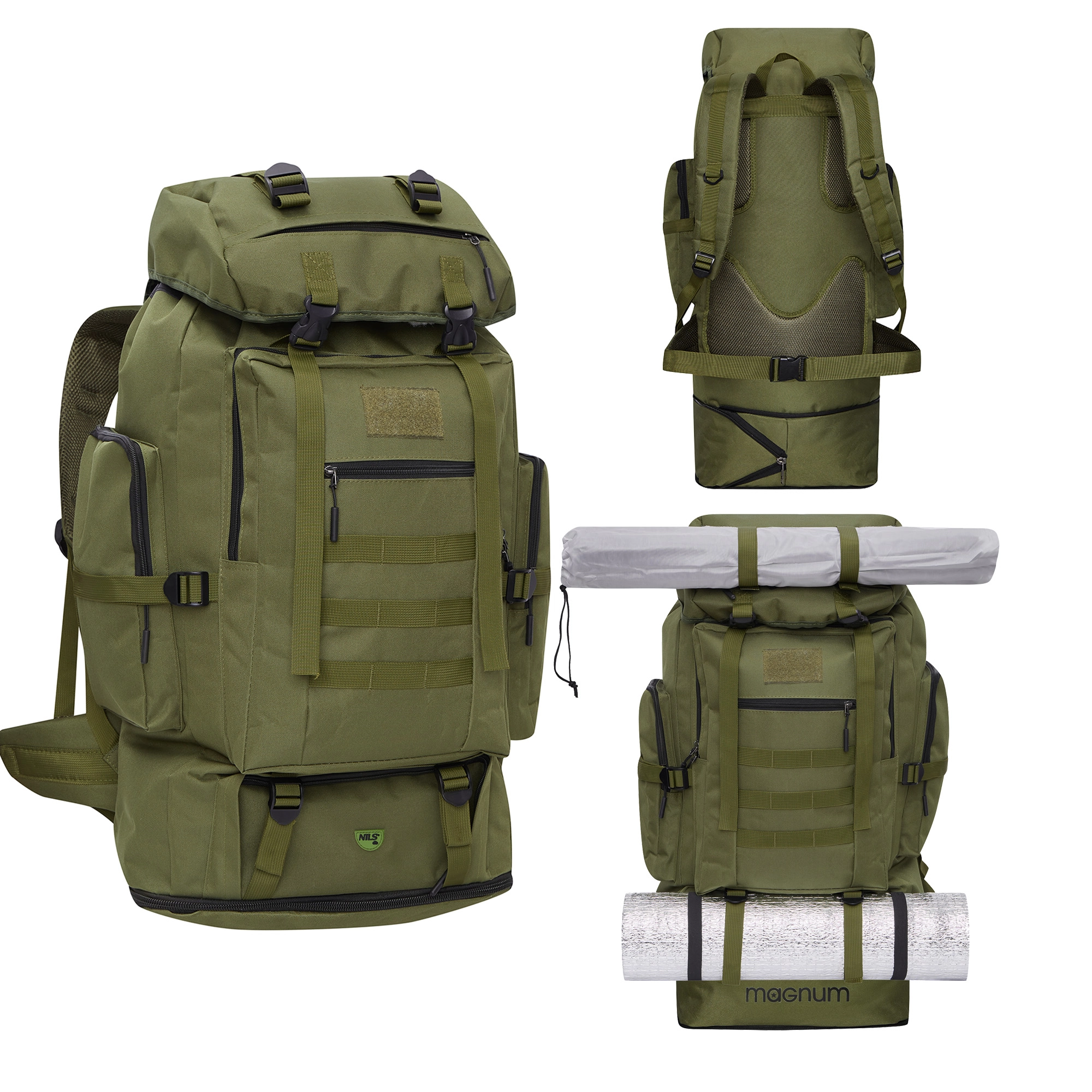 Dla wygody noszenia MAGNUM wyposażono w regulowany pas biodrowy i piersiowy, pasy kompresyjne oraz wentylowane plecy z systemem Nils Vent System. Górne i dolne paski pozwalają przymocować karimatę lub namiot, a przedni panel mieści dodatkowe akcesoria. Trwała tkanina 600D Oxford jest łatwa w pielęgnacji i zapewnia ochronę przed zachlapaniami.