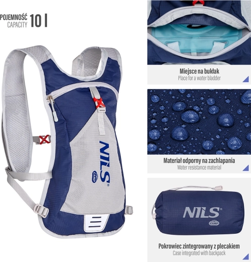 NILS Camp Tripper to praktyczny plecak o pojemności 10 litrów, wykonany z wytrzymałego nylonu i poliestru. Dzięki solidnemu materiałowi jest lekki, odporny na przetarcia i częściowo wodoodporny na zachlapania. Plecy i szelki z oddychającej siatki z piankową wyściółką zapewniają wygodę i lepszą cyrkulację powietrza.