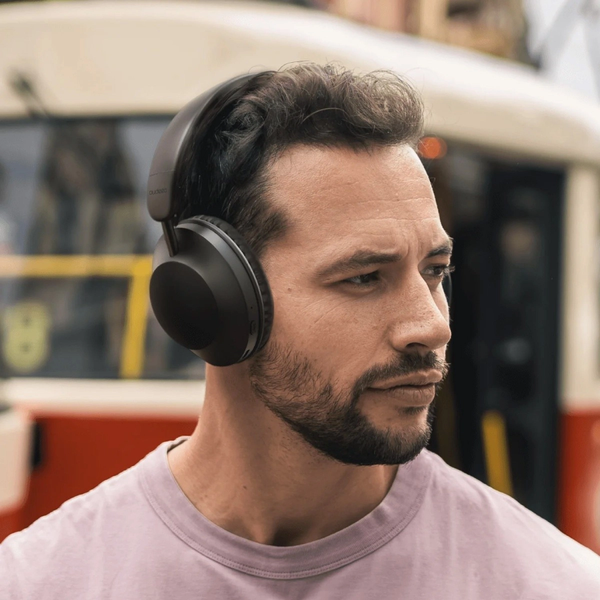 Miękkie nauszniki z pianki pamięciowej i wyściełany pałąk dla wygody, do 15 godzin z ANC lub 27 godzin w trybie BT dla niezakłóconego odsłuchu.