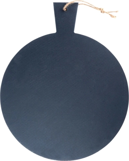 Podnieś poziom prezentacji potraw okrągłą łupkową deską o wymiarach 43 × 34 cm. Naturalny kamień w eleganckim czarnym kolorze z lekko fakturowaną powierzchnią i szlifowanymi krawędziami prezentuje się ponadczasowo i doskonale pasuje do każdego nakrycia stołu.