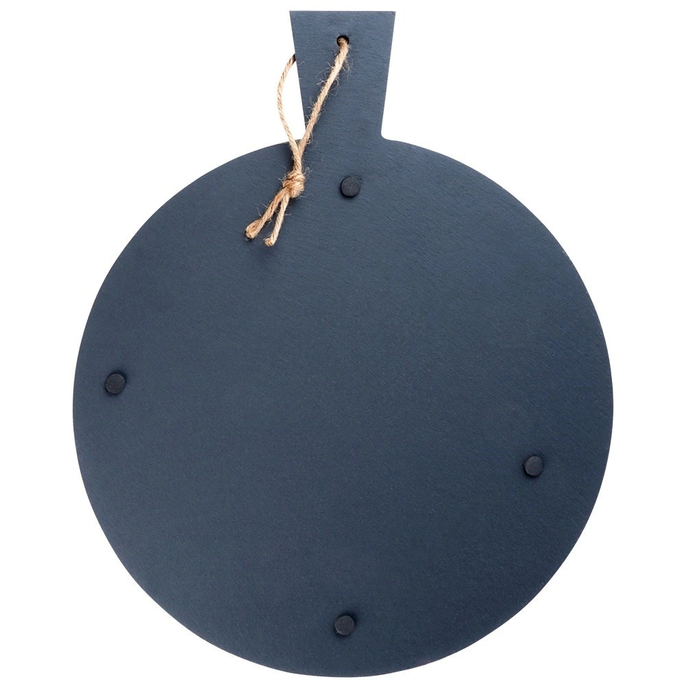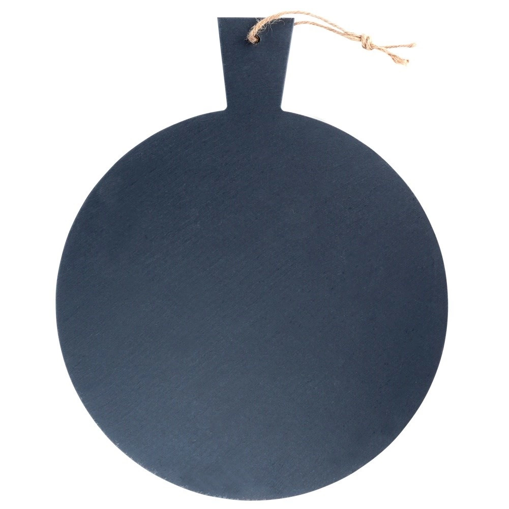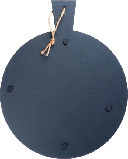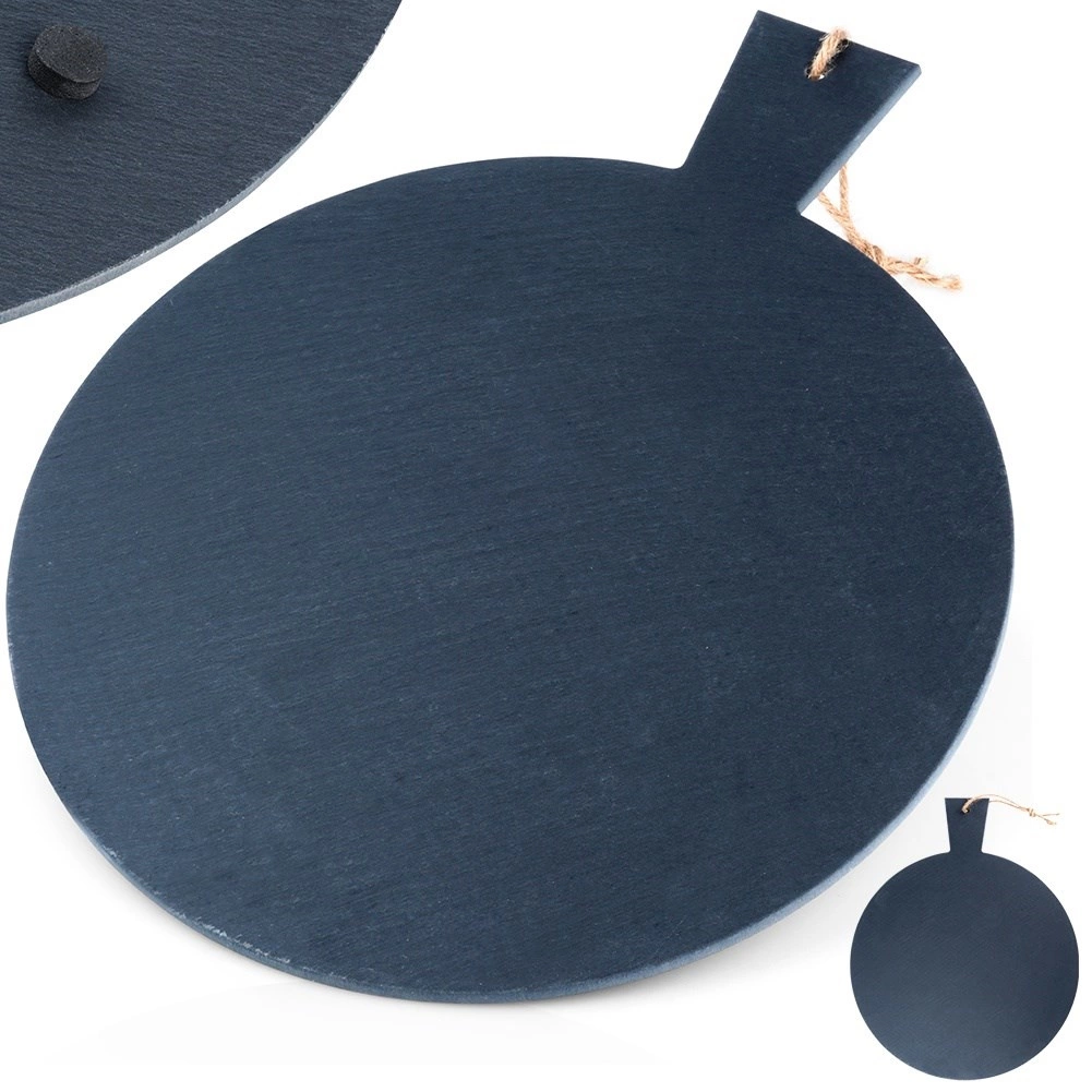Elegancka deska do serwowania z naturalnego łupka z praktyczną rączką i pętelką do zawieszenia. Wytrzymała kamienna powierzchnia jest idealna do serów, wędlin, deserów i przystawek, świetnie trzyma temperaturę i dzięki antypoślizgowym podkładkom pozostaje stabilna na stole.