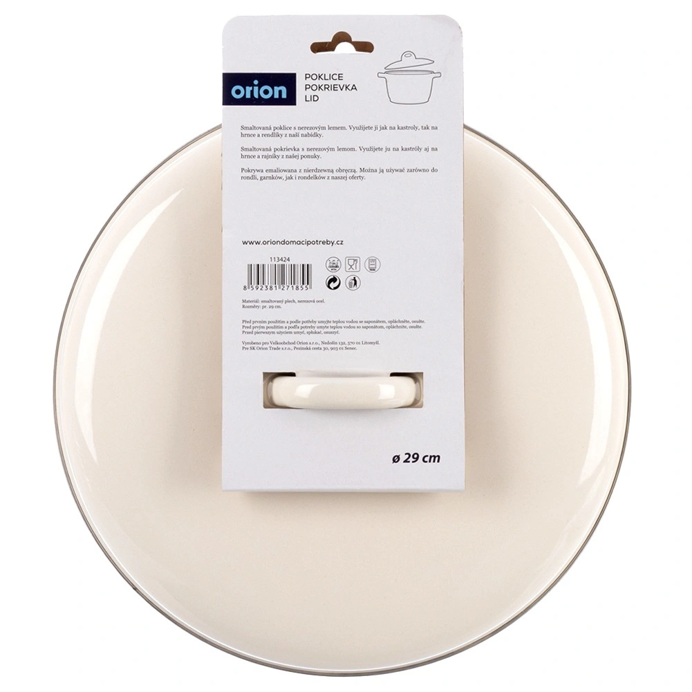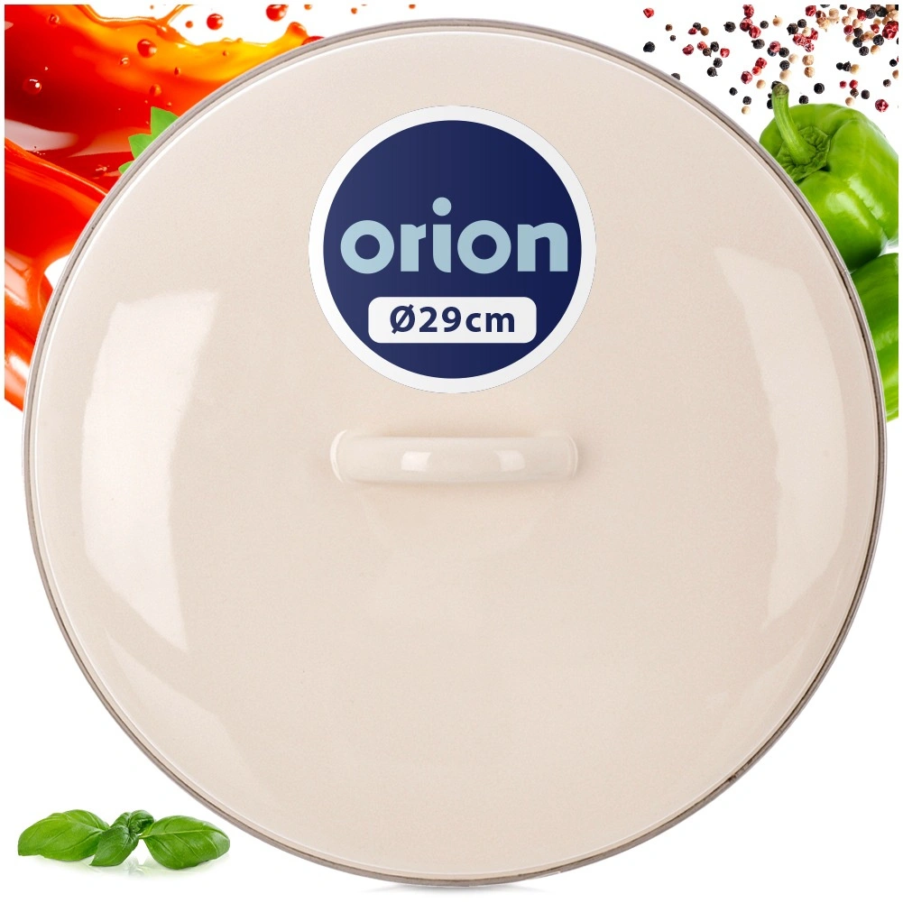 Uniwersalna emaliowana pokrywka o średnicy 29 cm z wygodnym uchwytem i trwałą metalową obręczą doskonale utrzymuje ciepło i parę. Odpowiednia do garnków, patelni i rondli tej samej wielkości, przyspiesza gotowanie i oszczędza energię. Wykonana ze zdrowotnie bezpiecznej emaliowanej stali w eleganckim kremowym kolorze, łatwa w czyszczeniu i odpowiednia do zmywarki.