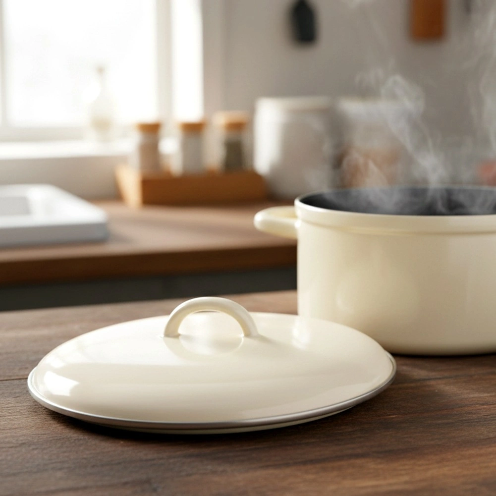 Praktyczna kremowa pokrywka z emaliowanej stali to idealny dodatek do naczyń kuchennych, które nie mają wieka w zestawie. Dzięki solidnemu uchwytowi i metalowej obręczy świetnie uszczelnia, zatrzymuje parę wewnątrz i pomaga uzyskać bardziej soczyste rezultaty podczas gotowania i duszenia. Minimalistyczny wygląd łatwo łączy się z każdym naczyniem.
