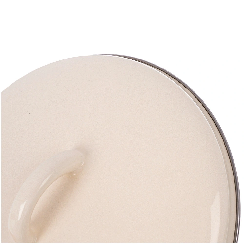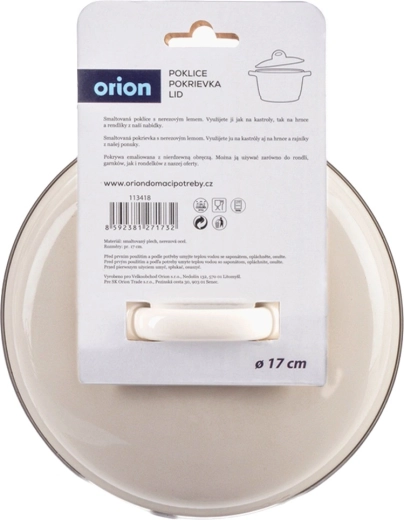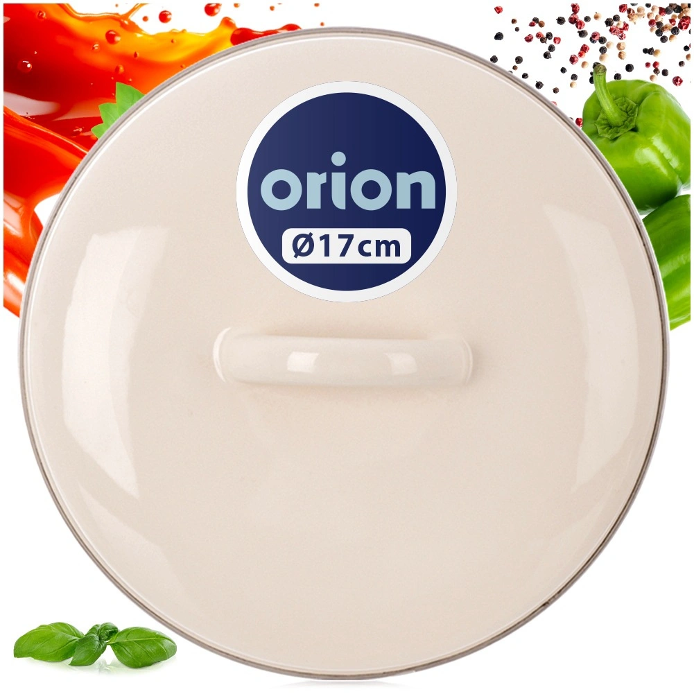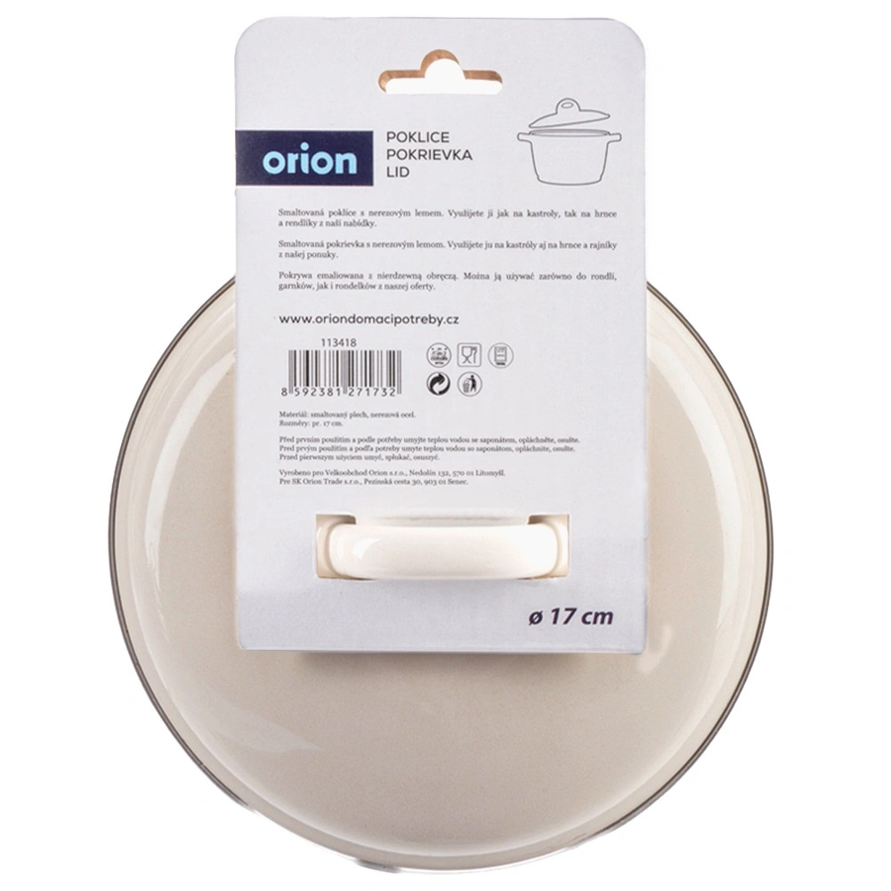 Uniwersalna kremowa pokrywka o średnicy 17 cm z wysokiej jakości emaliowanej stali, ze srebrną stalową obręczą i wygodnym uchwytem. Doskonale pasuje do garnków, patelni i rondli o odpowiednim rozmiarze, skutecznie zatrzymuje ciepło i parę, skraca czas gotowania i pomaga oszczędzać energię. Trwała, łatwa w czyszczeniu i odpowiednia do zmywarki, a także do użycia w piekarniku.